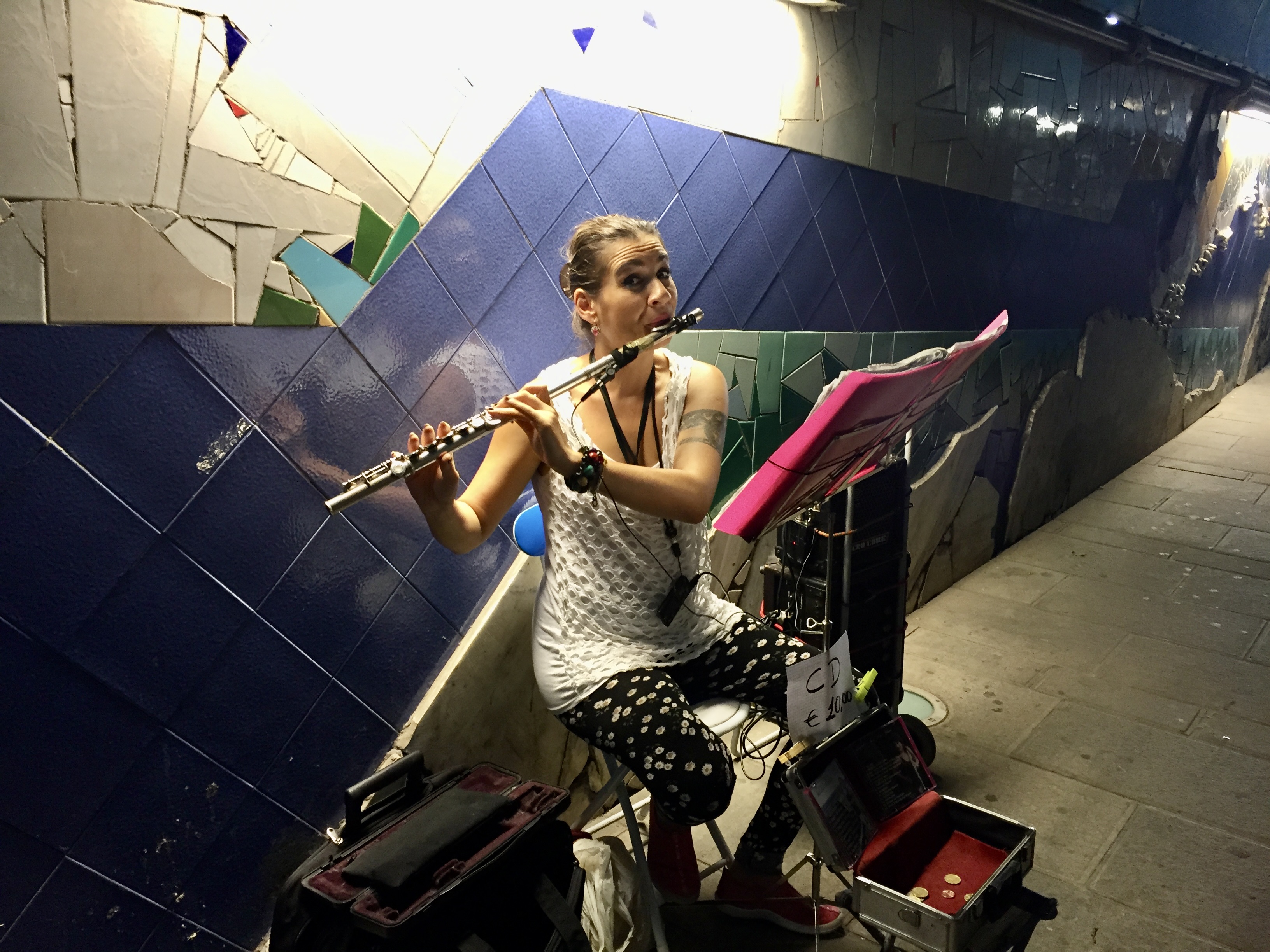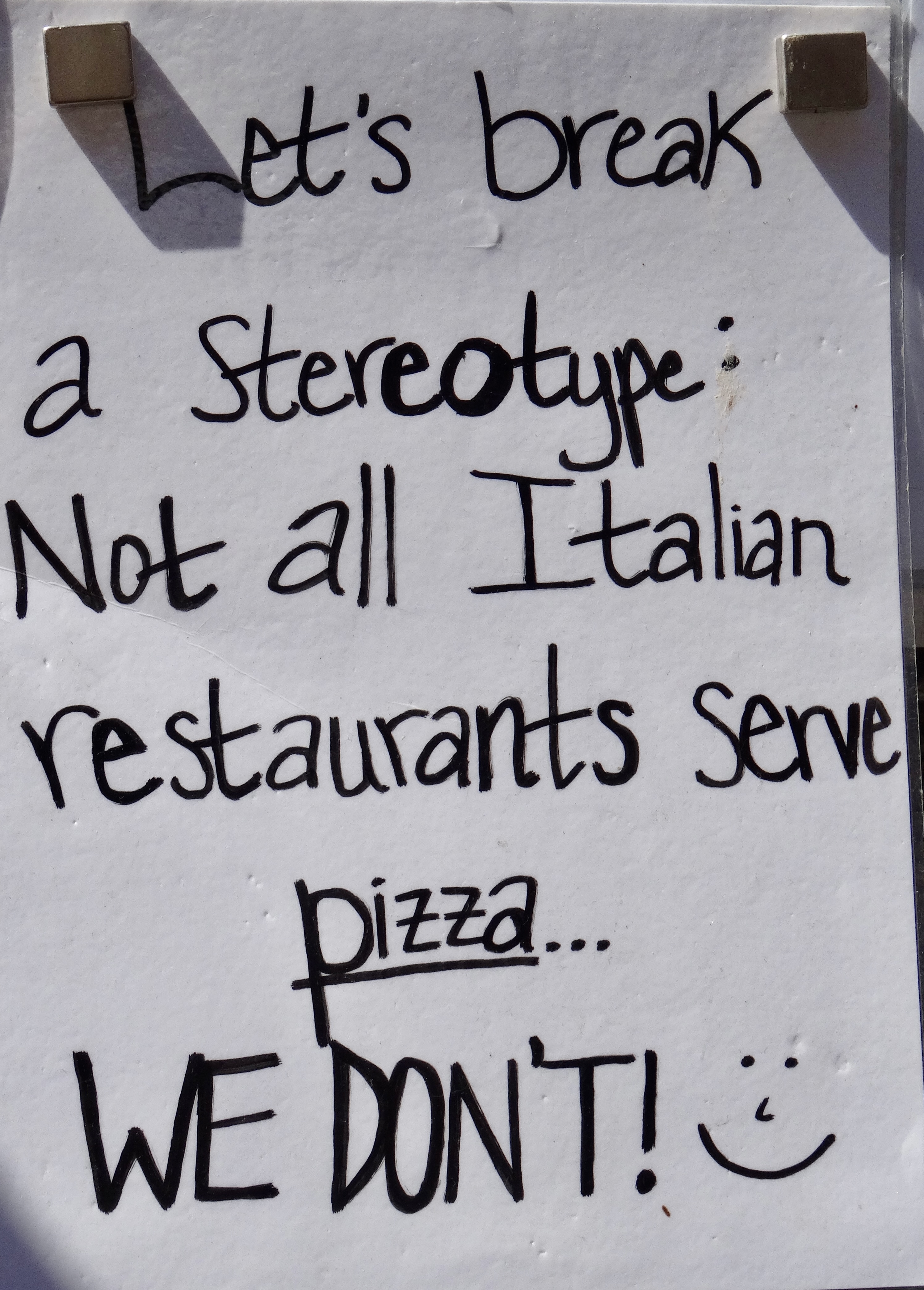 Bopped around Manorola and then attempted to find the train station to get back to Monterosso where we would catch the train to Genoa. Again many different directions as to where the station is and no signs at all. Made the train (only because it was late); got to Monterosso; had an hour before the Genoa train.. so we strolled the town again. It was a bit cooler, the crowds had thinned out, and the town looked better. Oh, and while getting on the very crowded train from Manarola to Monterosso a young woman wedged in between Mike and me and I turned and looked at her angrily as she literally pushed me forward and at the same time another woman tried to get Mike’s wallet from his back pocket.. but he immediately put his hand on his pocket and then the two ran off the train. Pickpocketing averted. They do say that those trains have lots of pickpockets; they even announce this at the train stations.