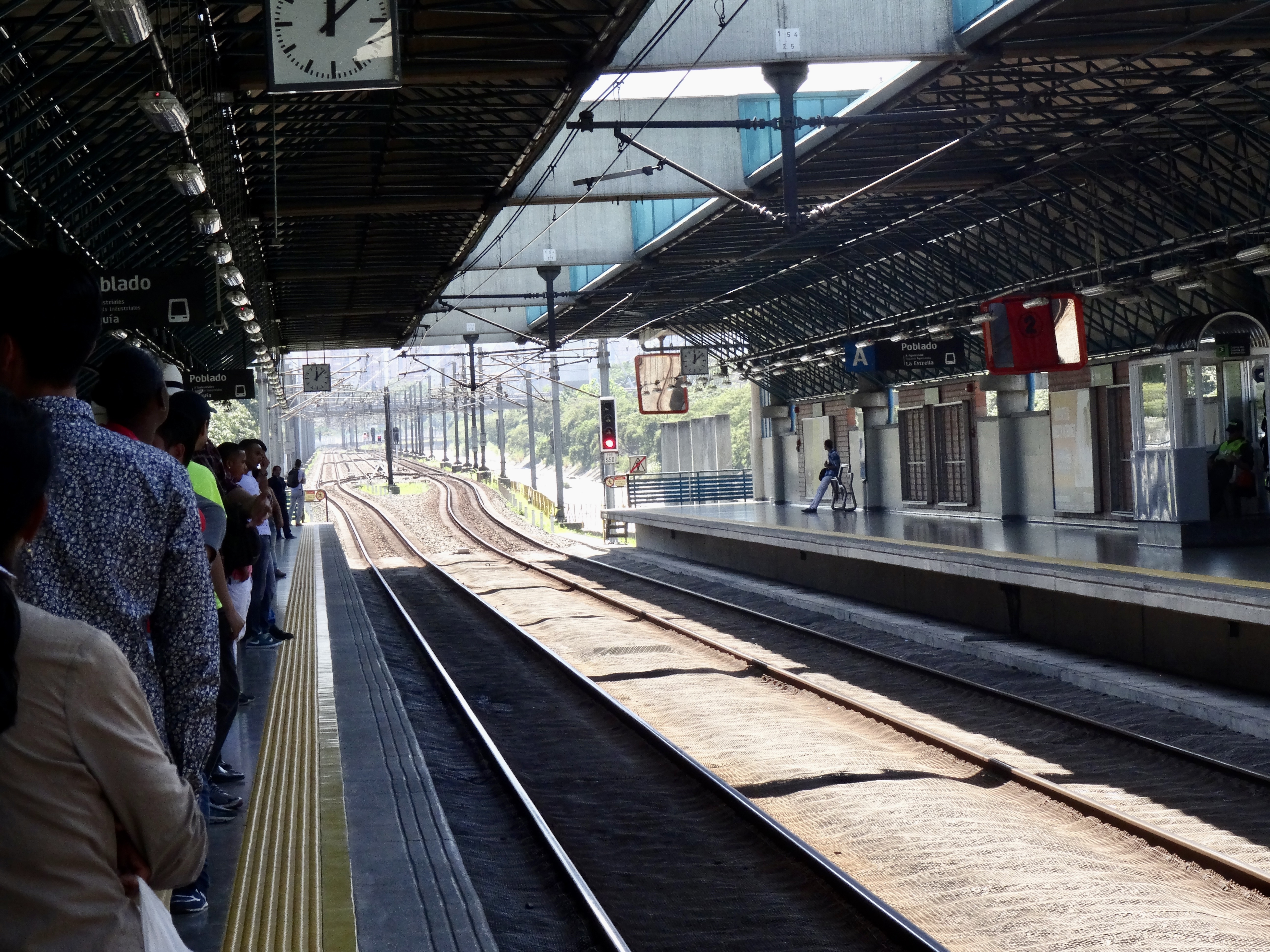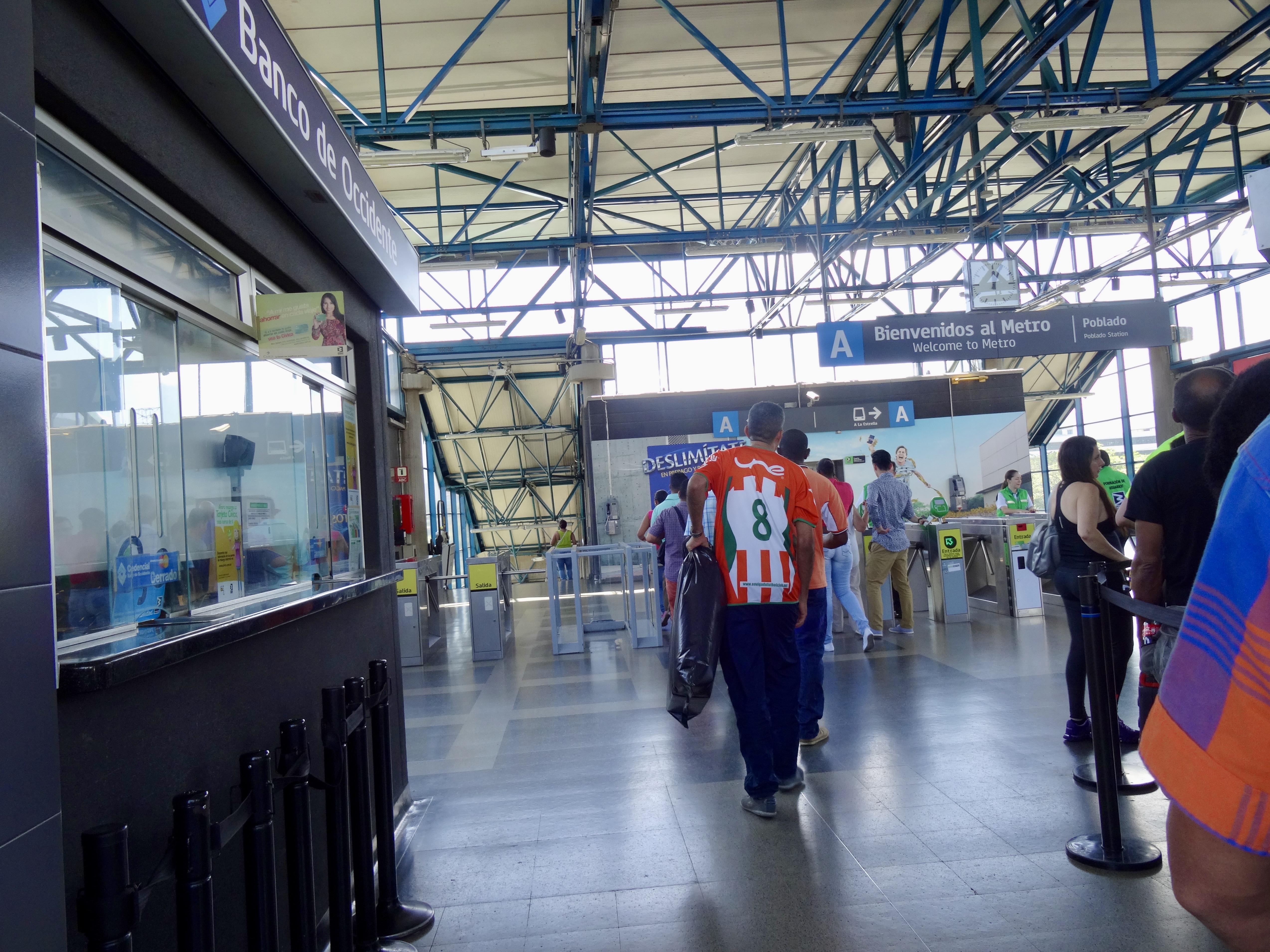 Walked the supposed 15 minutes (more like 30 minutes), mostly downhill to the metro station (Poblado)– passing a nice park and a lot of residential and commercial buildings. The Poblado neighborhood is pretty upscale, quiet, and fortunately not loaded with cops and security guards (actually we haven’t seen the swell of cops and guards here like you see in Cartagena’s upscale areas or like we’ve seen in Quito and some other cities. )