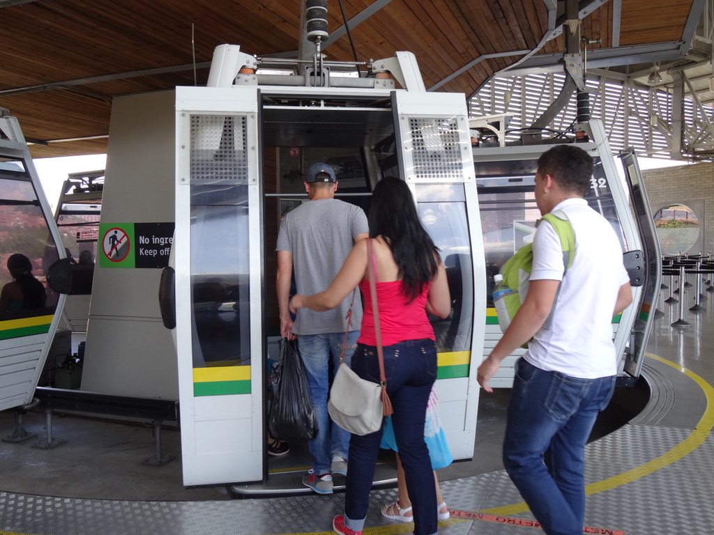 We figured out the system for buying tickets (which includes waiting on a very long line until you get to the counter. They don’t have automated machines to buy metro tickets which is surprising since the transit system is very modern and efficient). Got into fairly crowded train (like NY at rush hour, but people were basically polite, on their cell phones, and no pushing.. very civil), to the Estacion San Antonio where we navigated our way to the Metrocable which is quite sophisticated and should certainly be adopted by other Latin American cities that have similar geographic conditions.