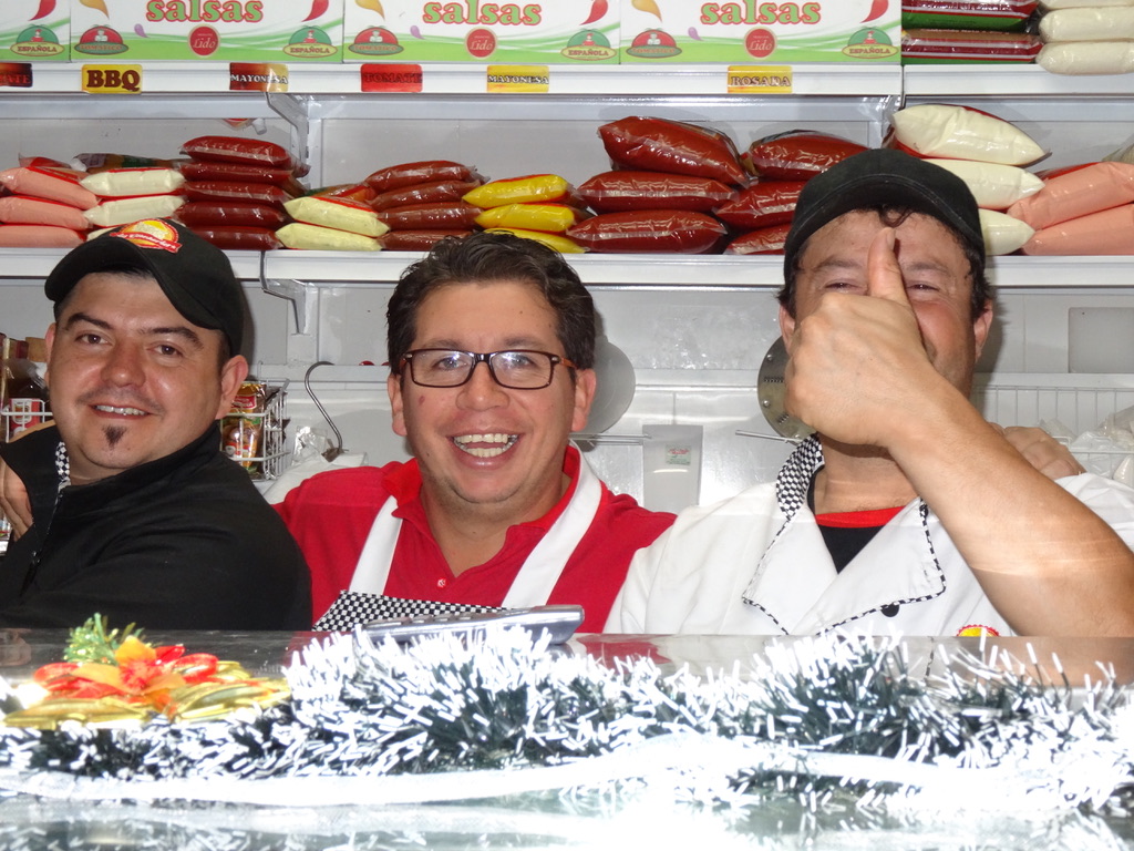 Interspersed within the food stalls are tiny, tiny eateries that can feed about 6 people on stools.. In one, the cooking area was about 6′ x 10′ and four people were working behind the counter, cooking, serving, taking money. We stayed at Paloquemao for about two hours and then headed out.