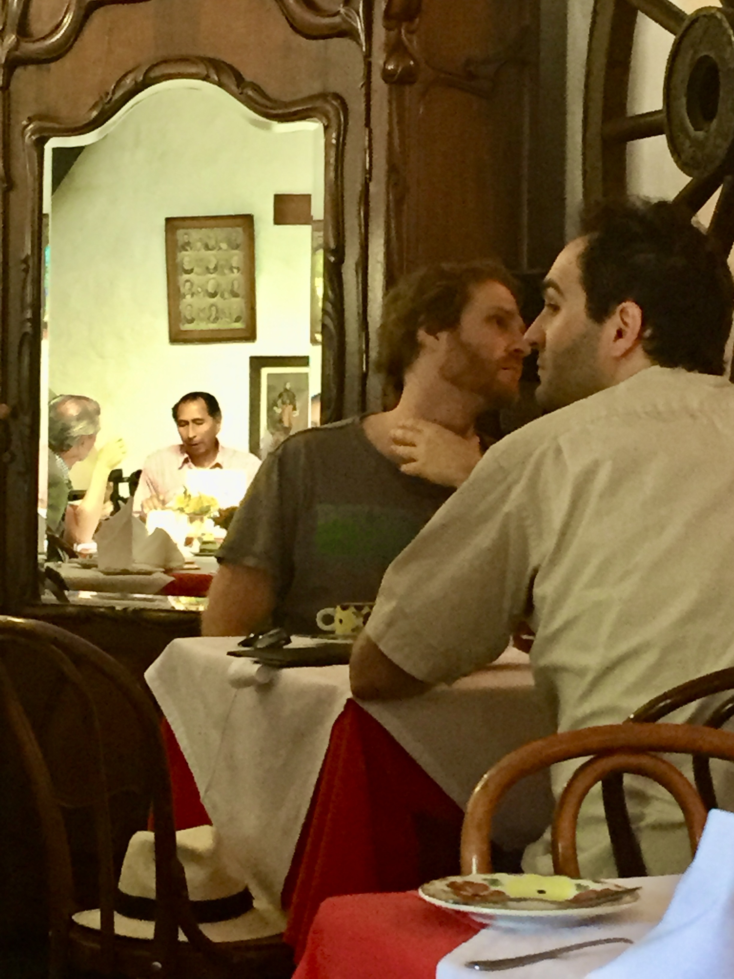 Every few blocks he’d roll down the window and ask another taxi driver where this church was… each gave different directions (naturally), and he trudged on, always saying (as far as I could understand) that he knew where to go.. Eventually, he let us off in the Candelaria where we had been yesterday and pointed to a church. We knew from the get go that this was NOT the correct church.. but oh well.. he was very sweet.. and as he was driving I noticed what looked like a good, old, traditional restaurant.