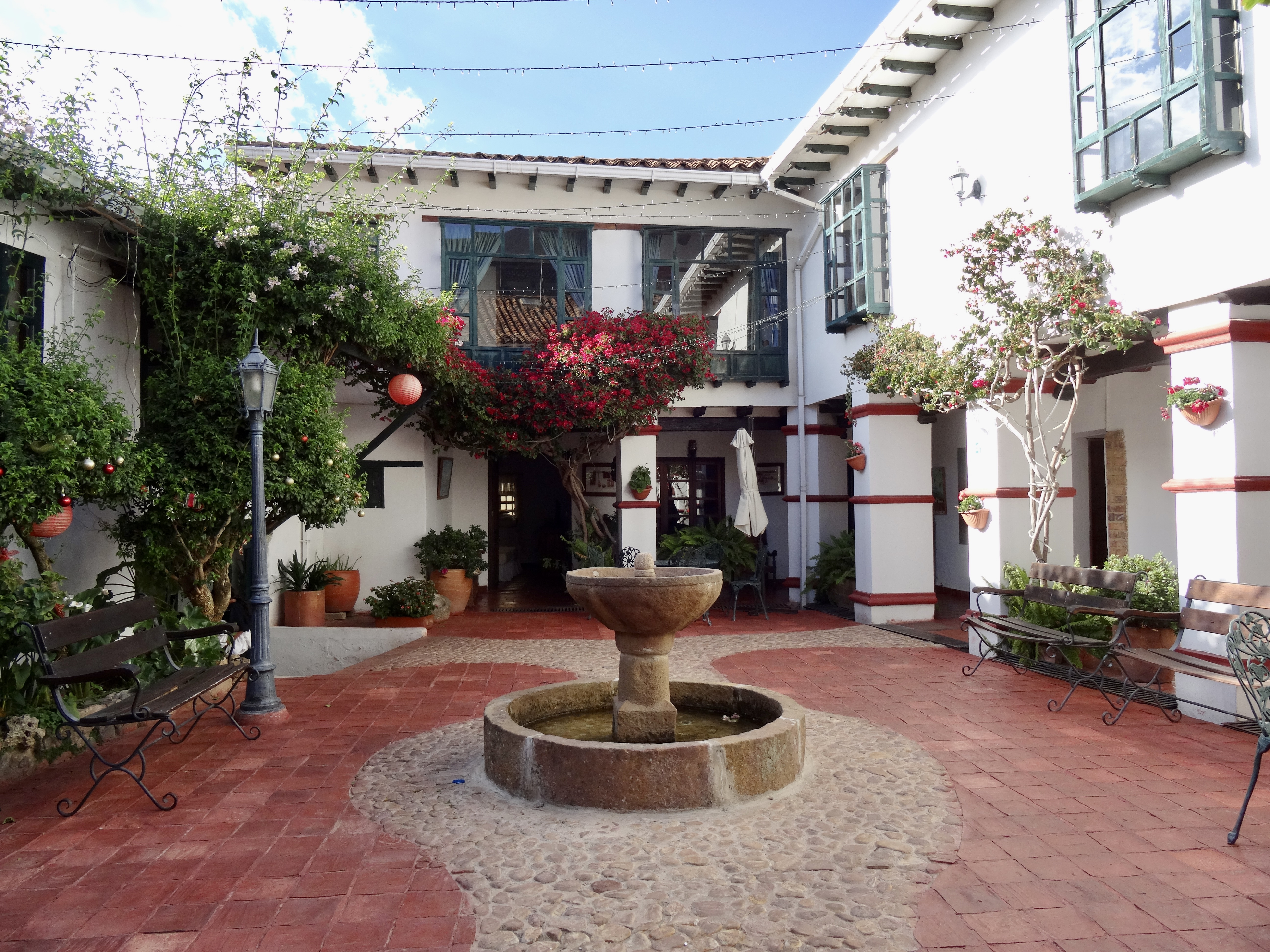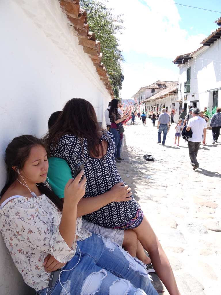 Villa de Leyva is sort of like the San Miguel de Allende of Colombia.. wonderful colonial town built around a very large (and very empty) Plaza Mayor (about 4 acres)… I mean that it is empty of any structures.. even benches.. so it feels even more vast. But it is always filled with people.. and tonight we understand it will be body to body. It is already set up for bands and people are lining the “stairs” that ring the plaza… and it is only 6 pm.. The streets are also filling up. Villa de Leyva is a totally, totally cobblestone street town… But the stones are huge so walking is pretty dicey.. Given my history of spraining my ankle on uneven sidewalks, I’m being extra cautious..