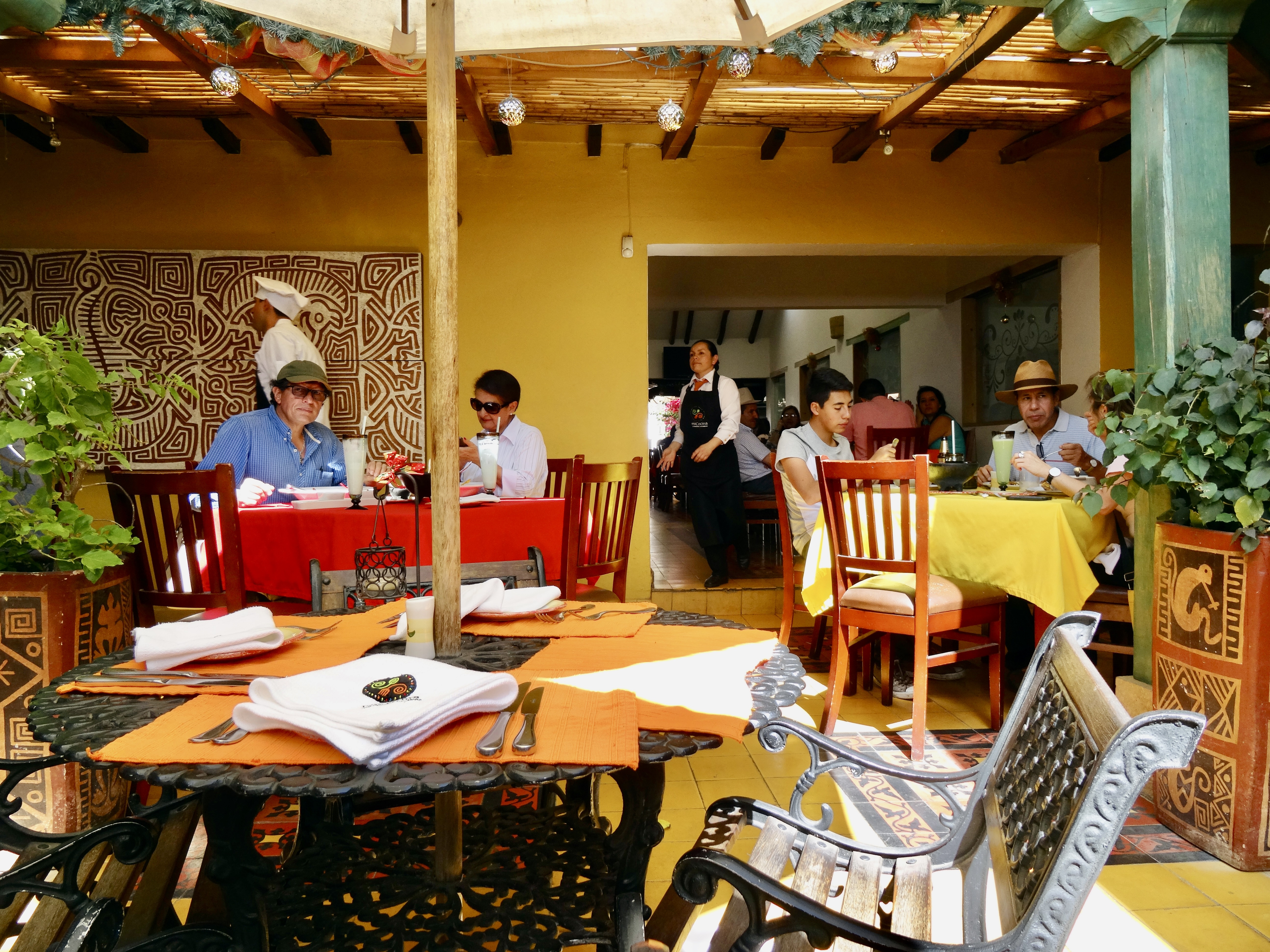 Mike and I strolled for several hours separately and then met up at the Plaza a few hours later to head for lunch.. Needless to say there are many, many choices. Some guidebook said there were 140 restaurants in the town.. whose population is under 10,000.. but I’m guessing the population swells about fourfold or more on holidays and weekends.. although it is not clear where people stay since hotels are truly tiny. The town was founded in the 1600s and in many ways has changed little.. because there aren’t any mineral deposits to exploit, so development is nil.. and the entire town is considered a historic preservation site. It’s sort of like a modern village housed in a shell that is 400 years old. Enabling the town to retain an unbelievable charm. But it’s clearly been “found” so curio shops and cafes line the streets.. But frankly, unlike some other towns that are big attractions, Leyva (as the locals seem to call it) has a charm in spite of the shops as the shops are all small, they are built into the first floors of existing buildings, no real signage… and the colorful things hanging outside of the shops are great contrast to the completely whitewashed buildings they are housed in.
