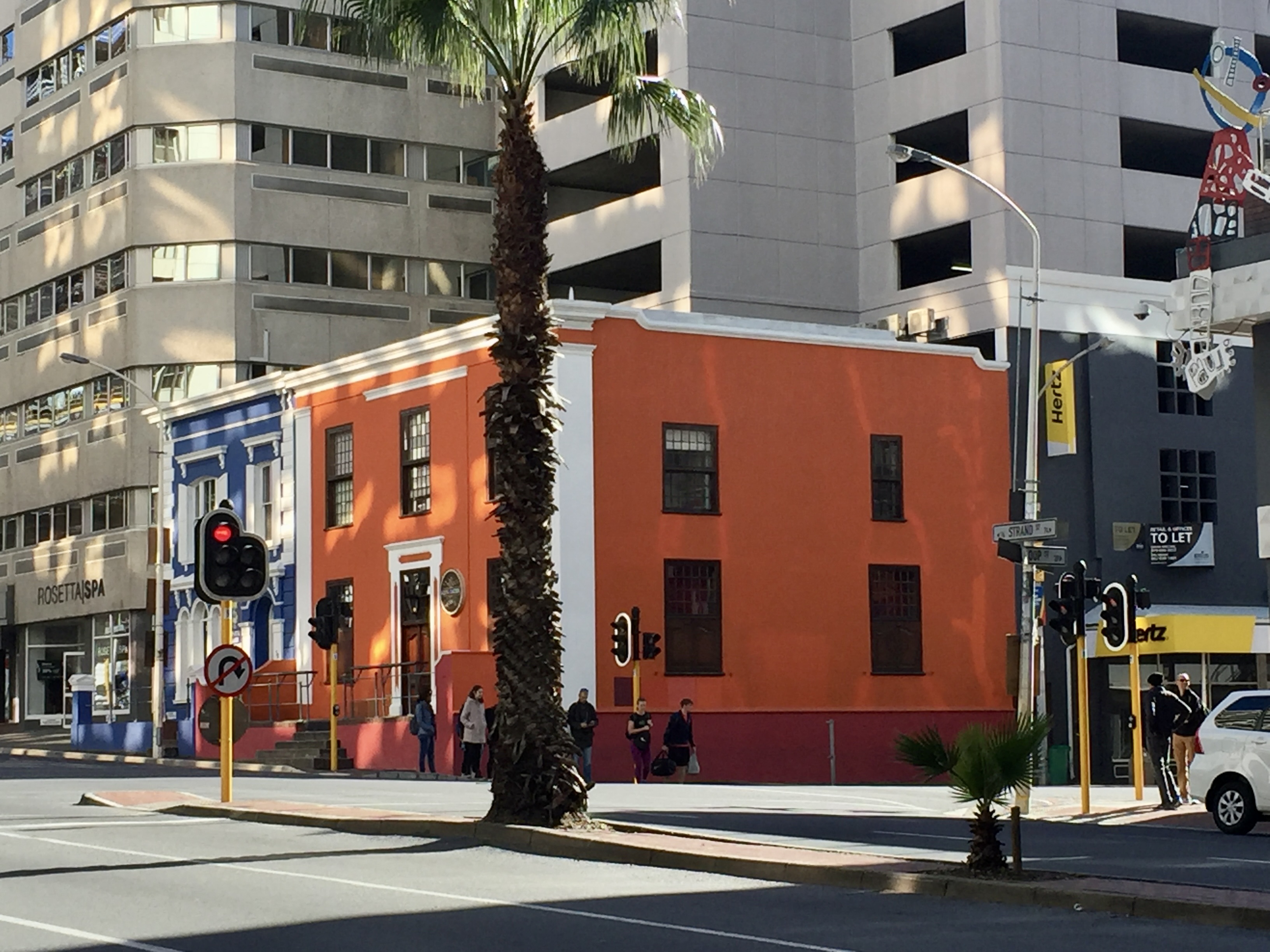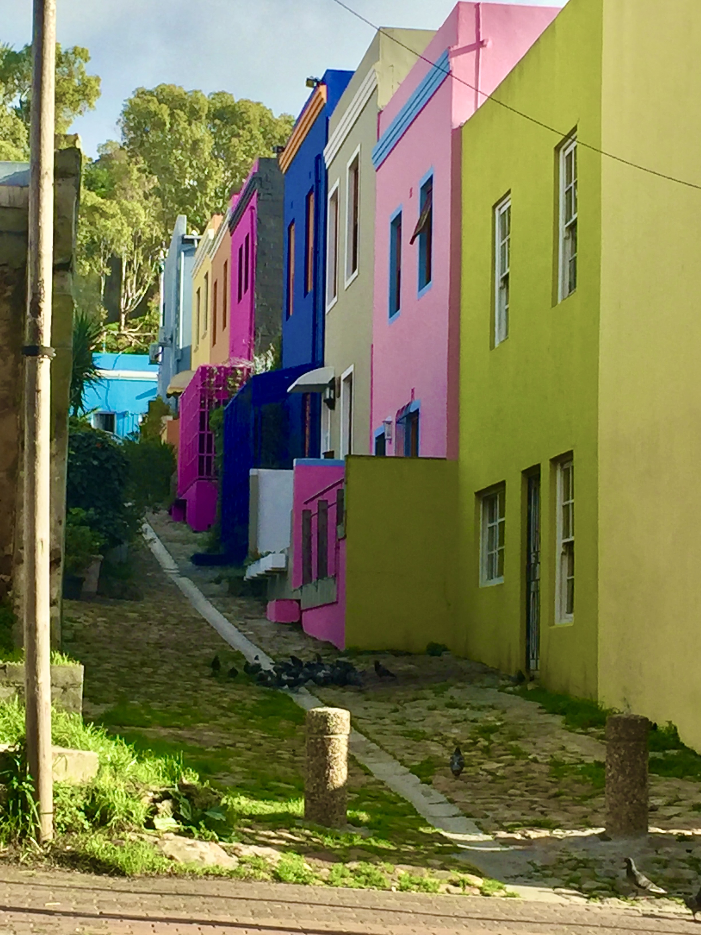 Began the day quite early, doing some work related to the office and dealing with some issues at the printer in LA. Then went to a caffe to meet a singer, Jennifer Jones who actually lives and works in Oakland. She’s here in ZA on a somewhat self-imposed sabbatical to get background information for her music. She considers herself an artivist, has been an artistic spokesperson for awareness and social justice through art. I’ll connect with her again when we are both back in Oakland. Then I strolled the Bo-Kaap, the neighborhood we’re staying in. It has an interesting history, as the place where descendants of slaves from Malaysia, Indonesia, and many African countries, who were imported to by the Dutch during the 16th and 17th centuries lived. As slaves, they were known as “Cape Malays” (which is not really accurate since many of the residents were not of Malaysian descent). The first mosque in Cape Town is also in the neighborhood so we are serenaded regularly by the call to prayer.