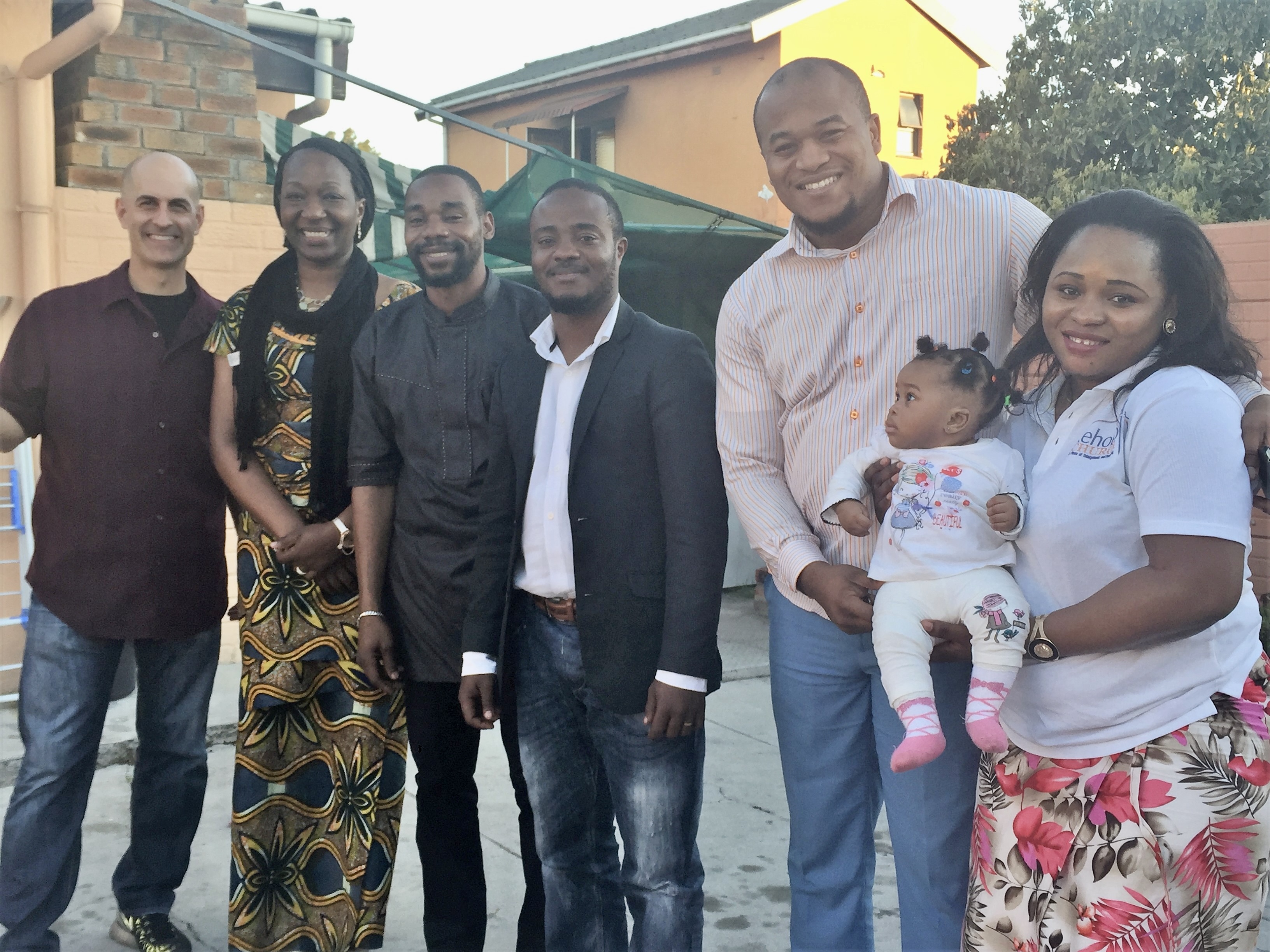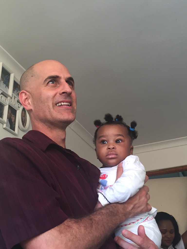 Marcel emigrated to Capetown about 6 years ago. He had studied literature in the Congo, but got a job as a waiter in an African restaurant when he got to Capetown. A few years later he got a job as an interpreter because he speaks French. He, his wife, and new baby (Marcella – 6 months old) live in a tiny house.. maybe 600 sq. ft. total, in a somewhat industrial area of Capetown. It’s a back house to a larger house. They moved there recently because their car had been stolen from in front of their previous house and they believed the area was dangerous. We arrived and there were about 8 people at the house – all wanting to meet us (friends of Marcel and his wife). Marcel is also a pastor in his spare time. Had a Congolese church, but now is looking for another church. Anyway, when we arrived in this tiny space, a table was set up with about 14 different dishes… and within this 400 square foot living/dining/kitchen area (the other 200 sq. ft. was the bedroom), was a big couch, two chairs, the table and then a few folding chairs… On the wall was a flat screen tv that was “on” the entire time we were all there conversing. Initially the program was a religious one, with a minister leading a congregation; that was followed by a South African version of “Candid Camera” which was followed by a sort of sit com from the 1980s (I’d guess), produced in South Africa…