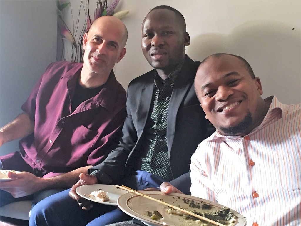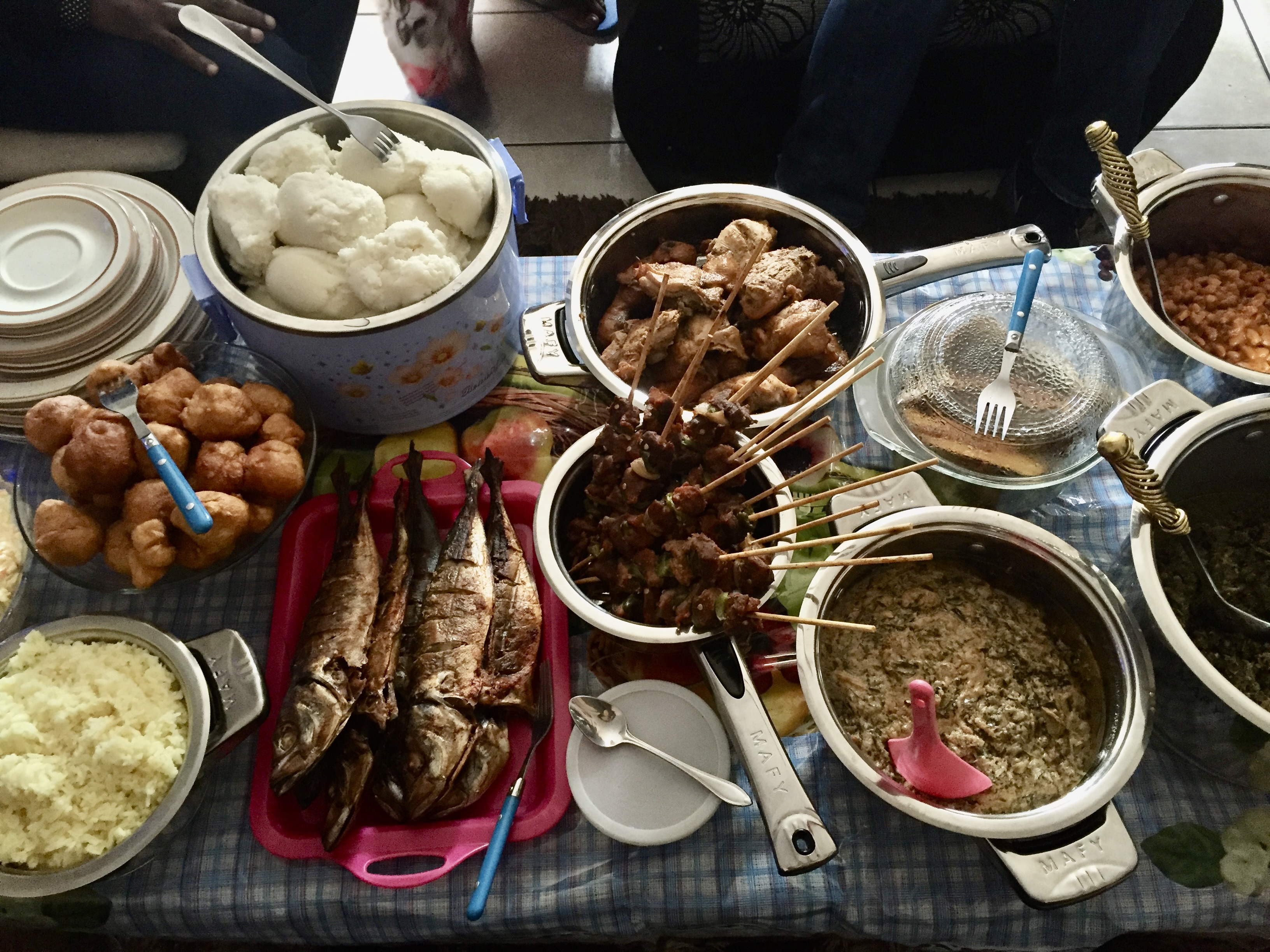 Marcel was delightful – sweet and caring. Many of the friends did not speak much English, but we were all cordial and it was a very warm experience. Eating with the “pap” was a bit complicated.. a little like eating with Ethiopian injera, but more difficult because the consistency of the pap makes it more difficult to grab food… The dishes included some kind of fried and dried out fish, a green vegetable that was very cooked and mixed with milk or some kind of dairy, chicken parts, beef skewers, cole slaw, rice, beans, mushroom paste, casaba, and a few others… They do not drink, so we had orange juice.