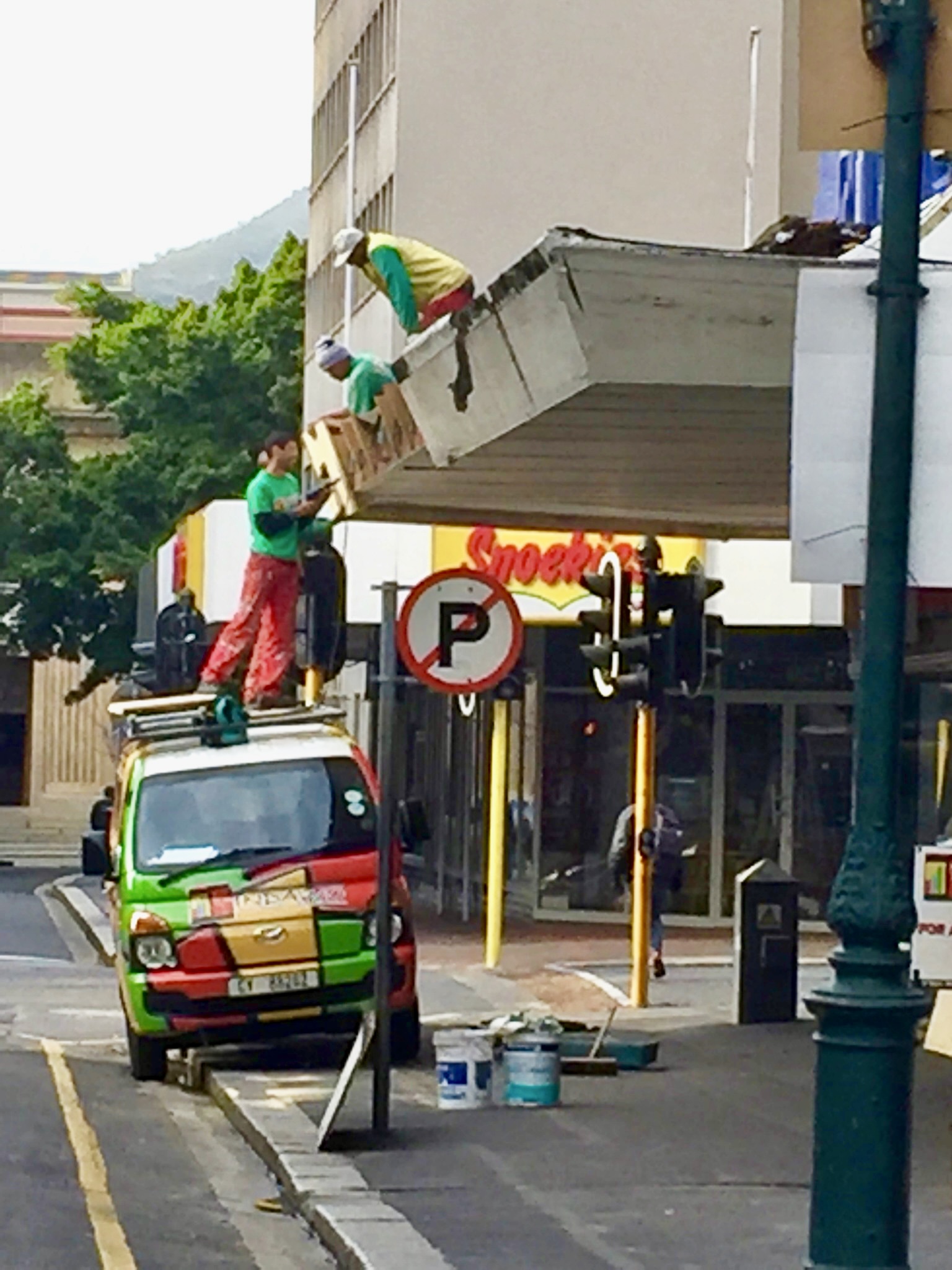 Sundays are pretty quiet — stores all closed, traffic minimal, town totally quiet, especially in the morning. I decided it was a good time to see the Holocaust Museum. Walked the mile plus to the museum, which is attached to the Jewish Museum (which I didn’t go into). The Holocaust Museum is small but interesting. It begins with a definition of “holocaust” versus “oppression” and while portraying an interesting look at both the Jewish Holocaust and other genocides over history. It includes information on the pseudo-science of ‘race’; the history and roots of antisemitism, and also the institutionalized racism of the Apartheid period. They make a strong effort to include information about South Africa’s role during the 1930s and 1940s. I didn’t have much time to view the exhibit in any depth, but would say that it’s worth a visit.
