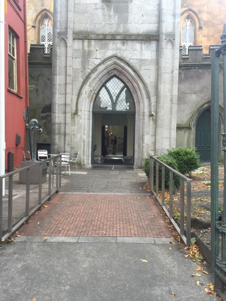 With hat on head we went on our way… winding up at a little Mediterranean place for lunch – Orso. Quite good… mixture of salads (quinoa, chick peas, bulgar wheat, cous cous) and spicy beef kafta… Fortified, we could continue our journey. First to a church that is now a city exhibition hall where there was supposed to be a model of the full city… but unfortunately it had been moved to the architecture building at the university. Then we walked back across one of the many pedestrian bridges over the quays uphill to the butter museum (which was sort of a joke but we did go in).. Takeaway: butter is an important product in Ireland. Across from the butter museum is the Firkin Crane – a circular building at the top of the hill – built in the mid-1800s to meet the needs of the Butter Exchange.. “Firkin” means quarter barrel, which was equal to 80Ibs of butter. The firkins (sort of casks) were weighed on a scale that was called a “Crane”.