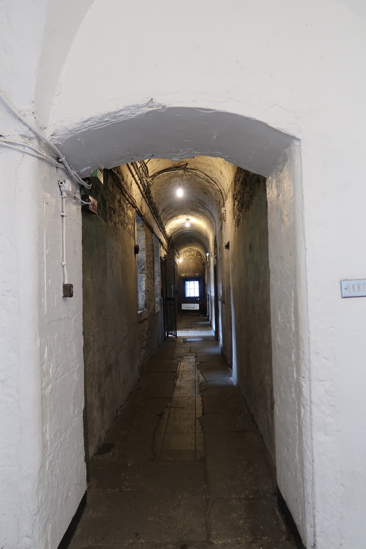 Met up with the guys, and headed to the Kilmainham Gaol (the prison) where revolutionaries, including the leaders of the 1916 “Easter Rising” were held and executed by the British. The prison was built in 1796. Originally, public hangings took place at the front of the prison, but there were such large crowds that came to see the hangings (and lots of drinking and violence outside the prison) that they moved the hangings to a central court inside the prison. Men, women and children were incarcerated up to five people in each cell, with only a single candle for light and heat. Most of their time was spent in the cold and the dark, and each candle had to last for two weeks. The cells were about 28 square meters.