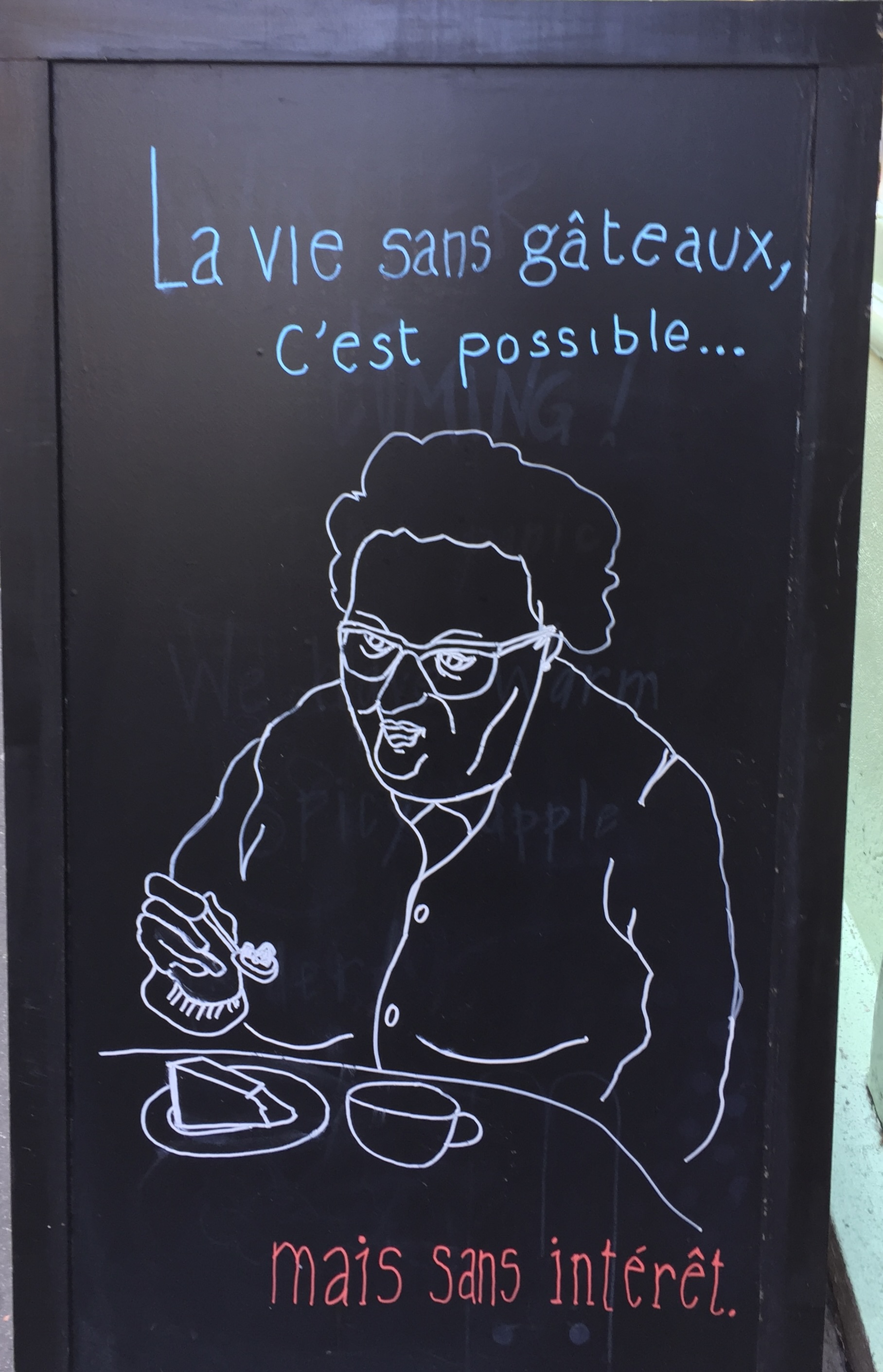 Given that Paris is familiar, no really interesting things to report except how quickly the city changes. We stayed in the 11th arrondisement (Oberkampf) where I’ve walked on past trips, but never stayed. This area is being gentrified rapidly. Anyway, I’m going to stick to food rather than local politics, because other than walking the streets (and setting up a makeshift office in the hotel room so that both of us could keep up with work), we mostly ate. Oh, we also walked everywhere – average about 5-6 miles on each of the two days.. but so much eating.. not sure the walking is enough to neutralize.