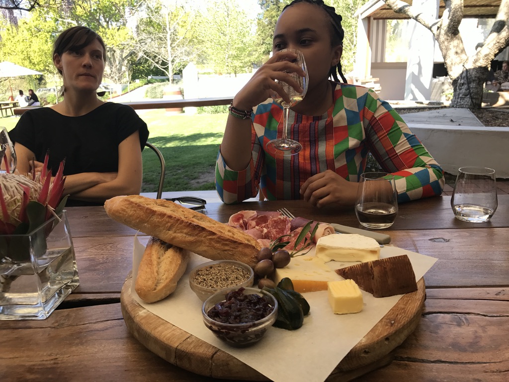 It was a free day for the students… and they each went to different places, and I think some just slept.. Chris and me and the graduate students went wine tasting… Hit up two wine farms (as they refer to vineyards)… with the second one being quite good… We did the wine flights and then ordered more wine… and had wonderful charcuterie platters and cheese platters.. . Sat outside overlooking the vineyards.. and the weather was fantastic. It’s truly another world and a world away from the townships. It was great, but strange in some ways. But still a good day.. and good way to begin the ending of the trip. Tomorrow students are back at the sites and Tuesday we meet with Albie Sachs and Chris does his lecture at University of the Western Cape (UWC).