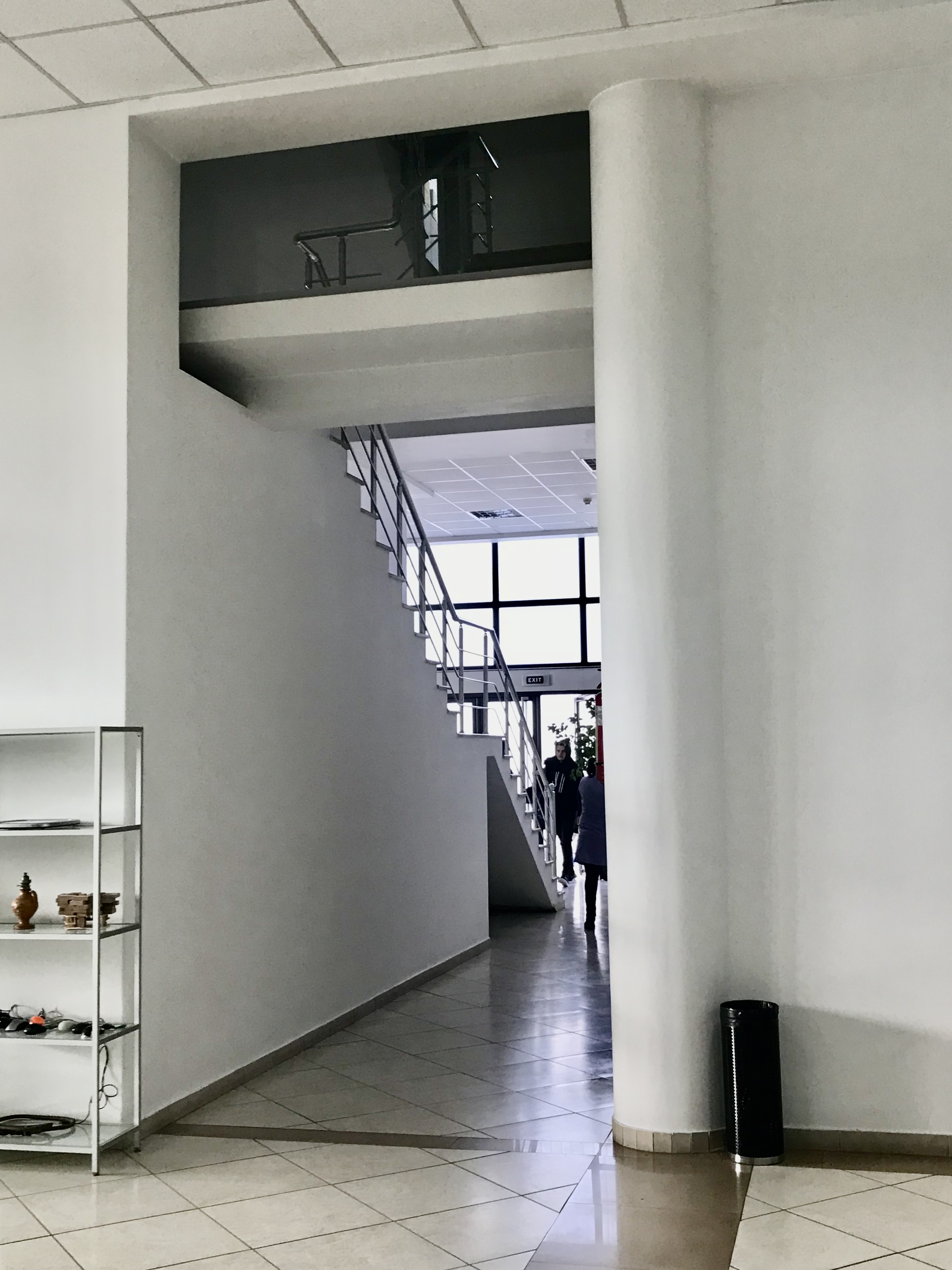 Taxi arrived and we managed to get to Polis University which is located about 5 or 6 miles west(?) of downtown. It’s an interesting educational institution located in a very renovated/ repurposed industrial building that has a whole new 4-story front section. Polis is about 10-years-old and offers bachelors, masters, and doctorates in architecture, urban planning, and design. The doctorates are offered in conjunction with University of Ferrara in Italy (I suppose there is a long explanation for this.) It’s a private university (technically for-profit, but clearly is not a business model set up to make profit). Anyway, it’s a truly exciting place with lots of activity – students milling about, making things.. very reminiscent of Pratt in the years I was there. I have to admit to a bit of nostalgia and realizing how much more exciting that kind of school is than the typical academic institution (like where I teach). Made me think a lot about what I had hoped might be created at UW Tacoma. Students at Polis are very focused and faculty are intense – all engaged with trying to solve real social problems in creative and collaborative ways. The building uses a lot of glass, so as you walk through the halls you’re very aware of what’s going in in classrooms, project rooms, etc.