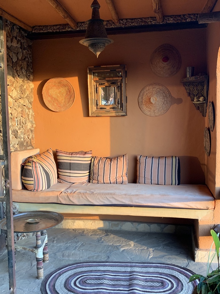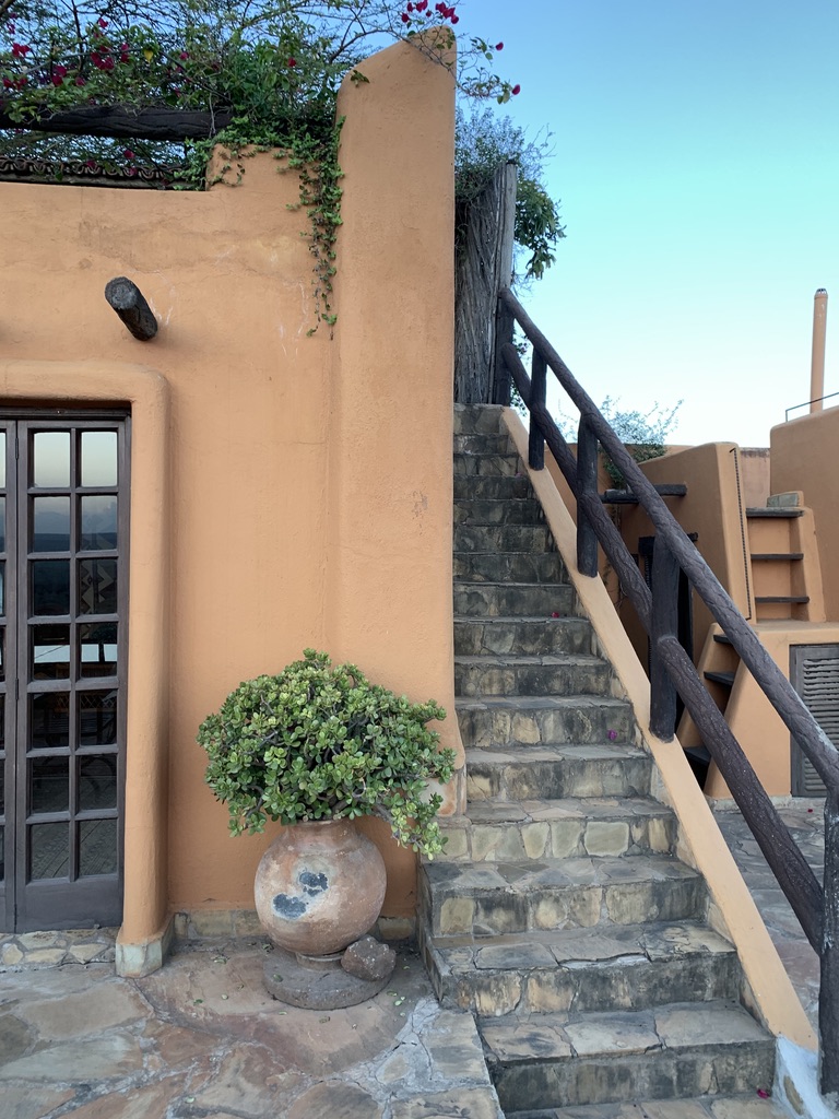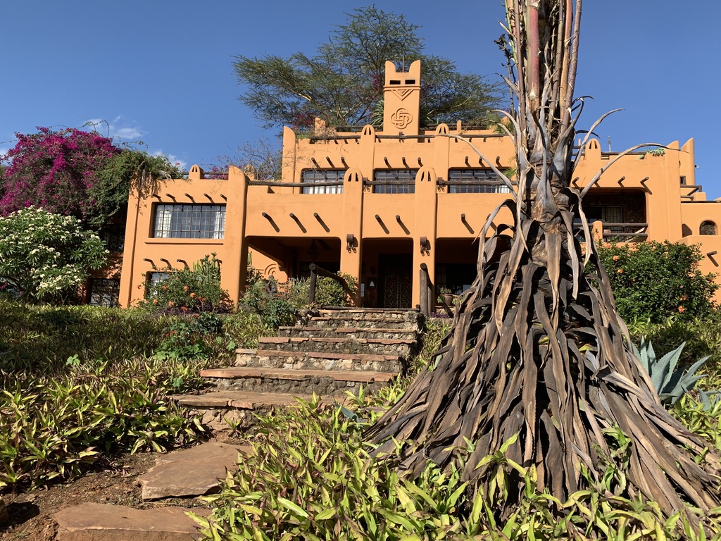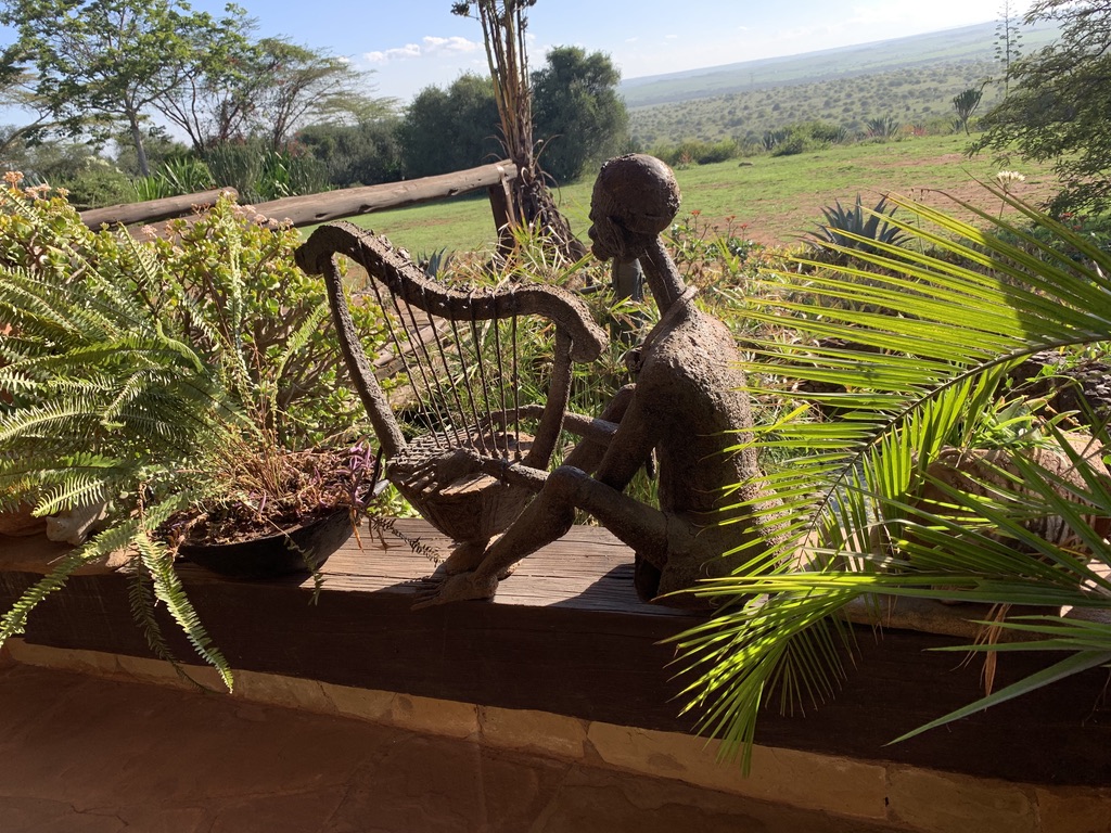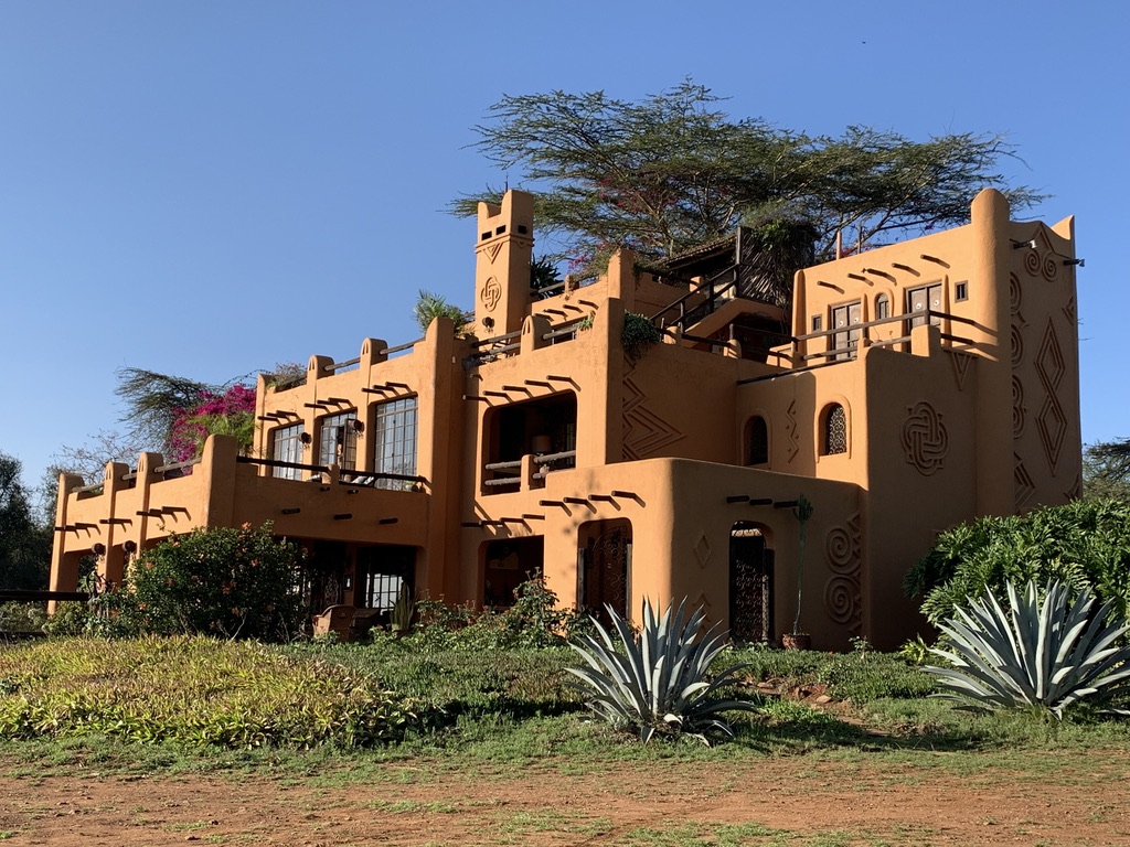 The Kenyan assistant reappeared and said that he would do the tour because Donovan could not, but that we would hear Donovan’s voice on this tape recorder that he carried from room to room and area to area. At the end of the “tour” which began at the railroad tracks (built by India) adjacent to the new tracks built by the Chinese government which defines the edge of the property and from which you get two spectacular views.. one of the house and the other of the vast national park where the major big animals still roam. It’s the area where the wilderbeast migrations took place annually (until recently).