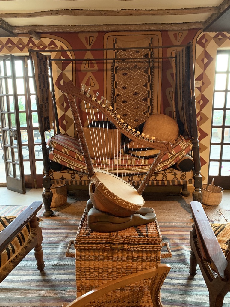 It is the private house of an American (Alan Donovan) who has lived in Kenya for more than 50 years; he came in the 60s with the US State Department, during the Biafra/Nigeria war. He fell in love with Africa (initially Nigeria while on a trip to a small village of craftsmen) and with African art and artifacts; left the State Department, and settled in Kenya where he became best friends with the first Vice President of the country, Murumbi and his wife, Sheila. Anyway, as we approached this spectacular mud-dabbed building designed by Donovan and based on the architecture of three different African cultures, we realized this was a pretty special place. But, they said we could not enter because we had not made the proper arrangements. Indeed, we had not made any arrangements. Apparently you need to book a tour in advance. You can also book lunch at the house. Of course, my NY-style surfaced immediately as I explained what we each do to the man at the house (who was clearly an assistant to, and not, Mr. Donovan), and explained we had made a special trip to see this place. I think he realized that we weren’t leaving, so he told us to wait and he went to speak with Donovan. During the time he went to speak with Donovan, we meandered gently into the house but there was so much to take in. This guy had collected amazing artifacts and also nurtured the careers of scores of then-young African artists to develop profitable careers. He also founded several African bands and Afro-jazz groups.