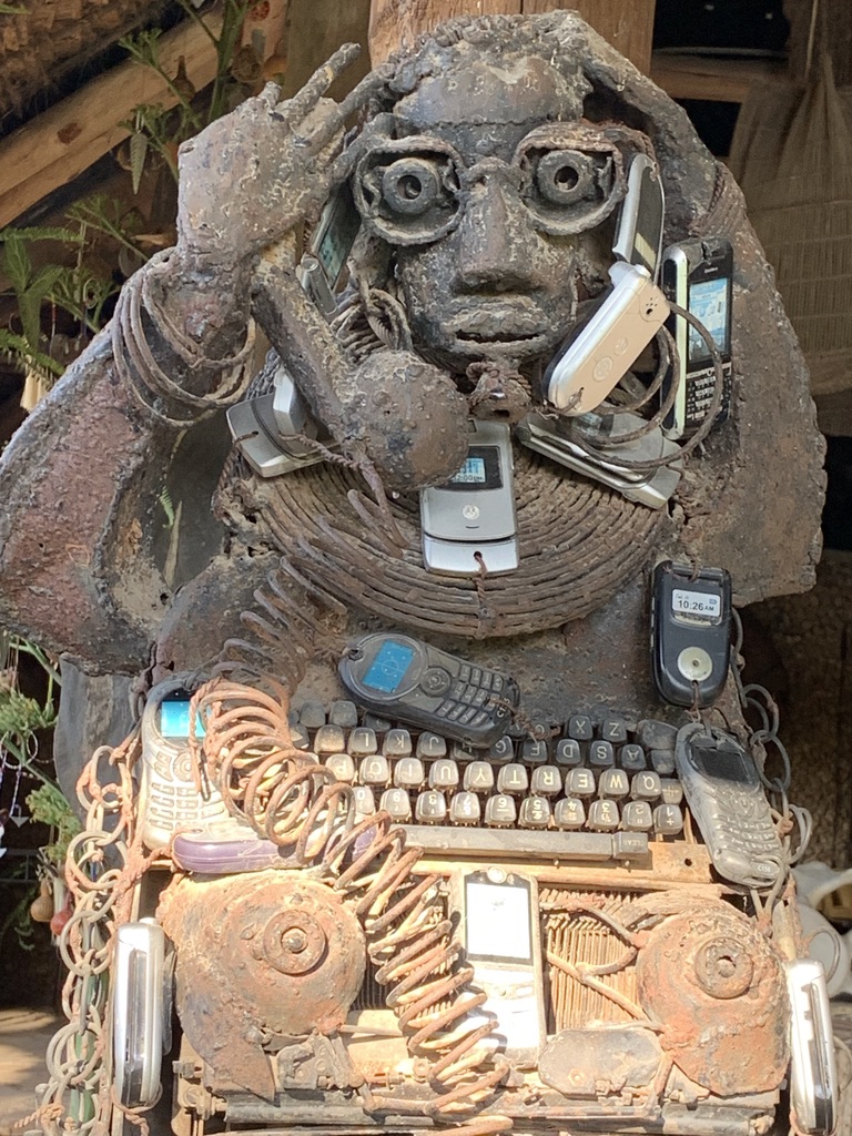 At the end of the tour, we met Alan Donovan who has been ill for the past year. He apologized for not taking us on the tour personally – and we chatted for a time. The house – in all its splendor – and his astute eye for both contemporary and ancient African tribal artifacts brought up old issues for me: the dilemma of making “little ‘a’ art” into “big ‘a’ art;” private ownership and commodification of art; etc. At the same time, it is clear as one traverses Nairobi, that there is little acknowledgement of history and of the amazing contributions of tribal cultures and their forms. So at least someone is protecting these artifacts. The good news is that it appears that Donovan (Murumbi and his wife are deceased and he credits Murumbi with the idea of this kind of preservation and also economic development through craft and art) has plans for the house and its content after his death. He has approached the Obama Foundation!! And offered everything to them – as a total donation, on the terms that they preserve it as a place to retain African culture. He’s also offered that the Obamas can visit and stay at the house as frequently as they’d like. We shall see… Interesting politics there!