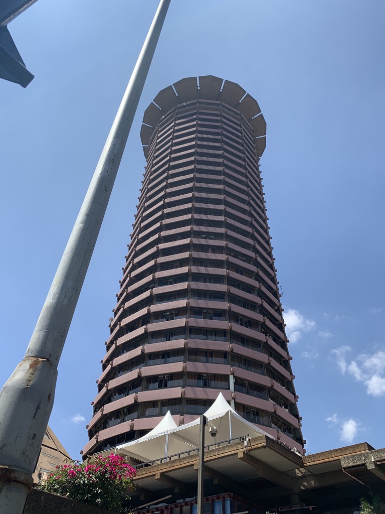 Then off we went for a most interesting day – to the top of the KICC (Kenyatta International Conference Center) – a strange 28-story building built in the early 70s when the country became independent. It is one of the few buildings with a viewing deck where you can get an overview of the city. Of course, lots of security every step of the way, plus signing in and out and giving up your passport while you’re inside the building. The elevator takes you up to the 27th floor and then you climb up the thirtieth floor which is really the roof. The air was not very clear so we didn’t get quite the effect we hoped but we did get a sense of the city’s form, including some very large parks at the outskirts.
