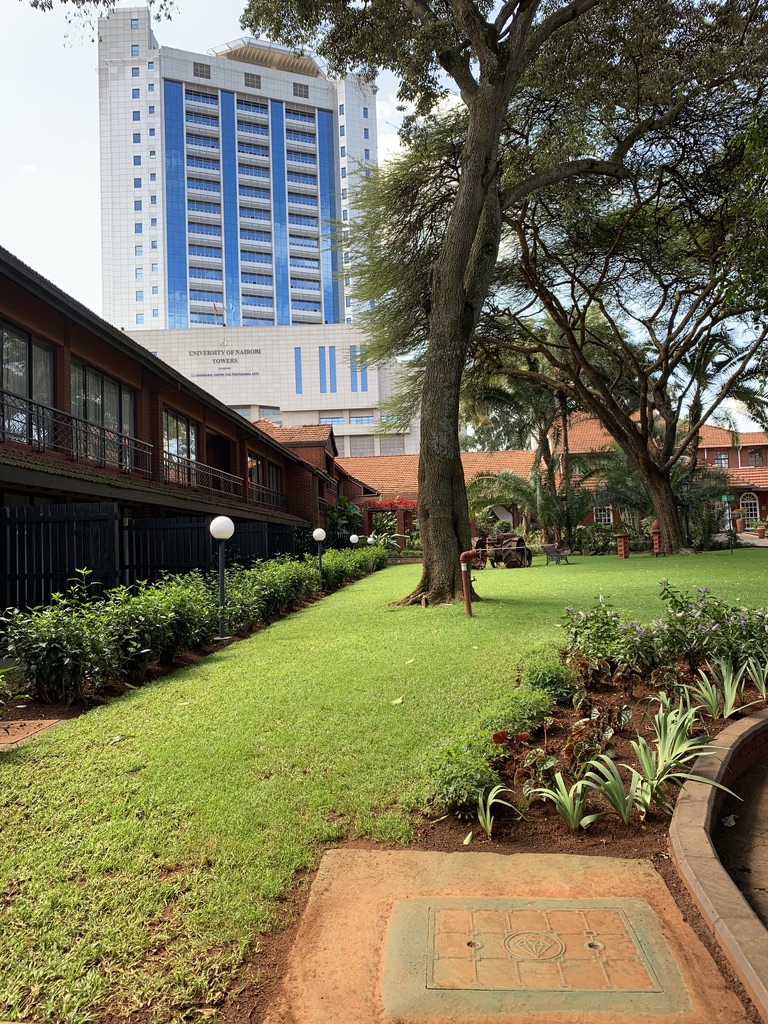 While we were exhausted and wanted to sleep – we opted to unpack and head for the hotel’s delightful bar for night caps. And then we crashed. By then it was 3:30 am. This morning we got to actually see the hotel. The grounds are truly beautiful and the location is great. Lots of gardens…but right in the center of town. We opted to have breakfast at the hotel so that we could get an early start checking out Kenya’s capital city – home to about 6.5 million people. Following a great breakfast, we decided we needed a real street map of the city in order to figure out where we were and where we’d head. This is actually a difficult thing to find. Finally the hotel suggested we go to the “text book center;” the hotel is located just across the way from the University of Nairobi. Naturally, they thought they should take us there; but we assured everyone we were fine walking to the shop. We did get a map (two in fact), although they look used and really worn. But they will work.