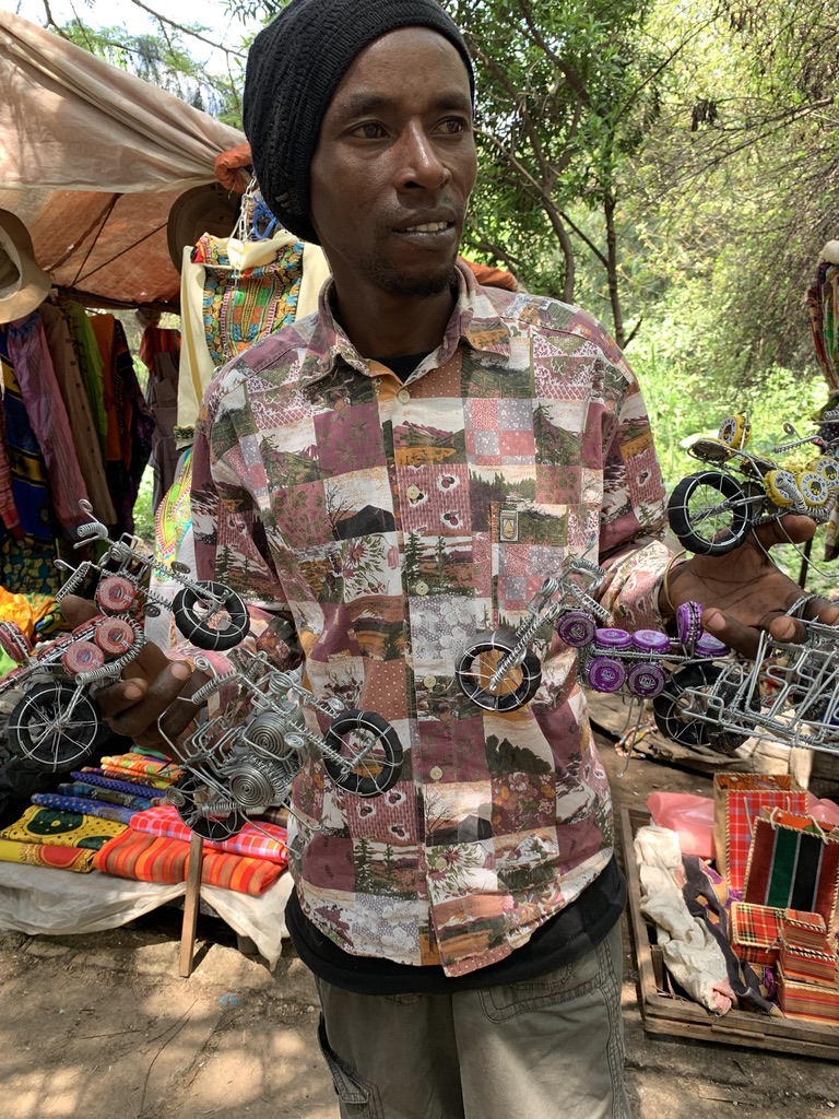 After breakfast, we walked to the Maasai Market which takes place only on Tuesdays. The walk was pretty straight forward, except for crossing multi-lane roads without any pedestrian walkways or traffic lights (there are very very few traffic lights in Nairobi); it’s sort of run for your life. Our trick in these situations here and in other developing nations is always: find a group of locals trying to cross the same street and get in the middle.. when they move, you move!