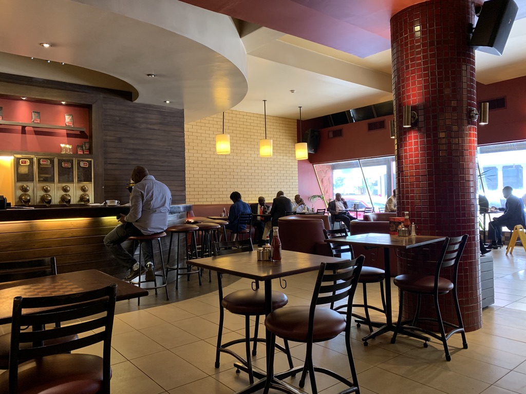 Tonight we were planning to eat at Amaica, some kind of fusion African restaurant we read about. But we wound up having dinner at Nyama Mama, because Amaica was closed for the holidays (very difficult to find these things out in advance!). Still we were set on eating African food, so this place seemed to make sense. It was fine, but not great. Crowd was very mixed.