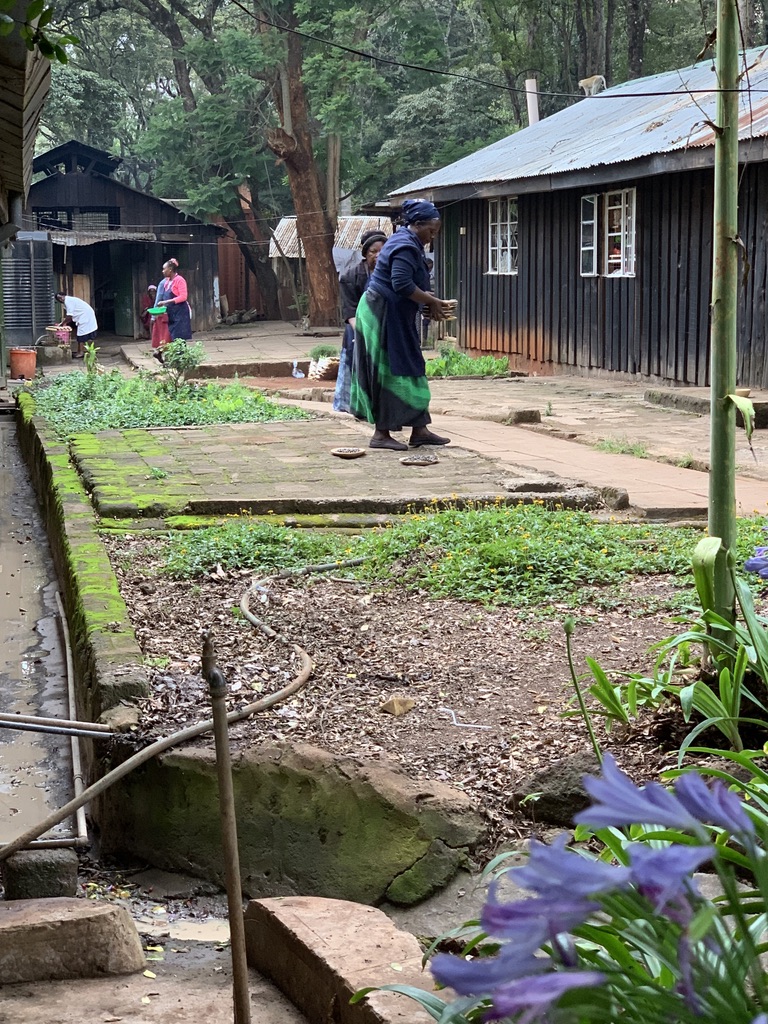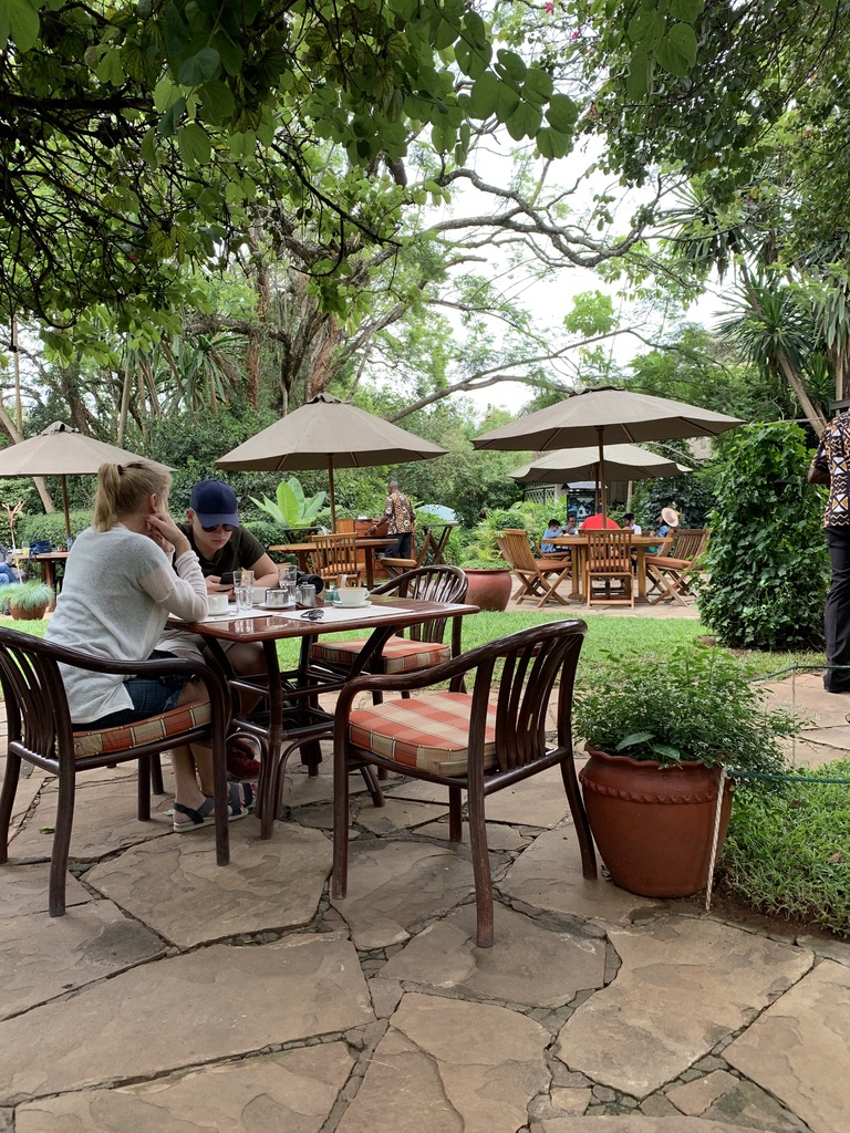 We headed first to Tamambo, a wonderful little café on the coffee grounds of the original Karen Blixen estate (more on that in a bit); service was incredibly slow and we worried it could put a dent into the very long list of things we wanted to see and do. After lunch I headed to the Kazuri bead factory to see the bead-making techniques and check out their on-site shop while Mike got dropped off at the Giraffe Center where he was determined he would “kiss” a giraffe (apparently you get some kind of pellet of food and stick it between your lips and the giraffe comes over and slobbers over you and grabs the food). Did not sound like something I needed to experience.