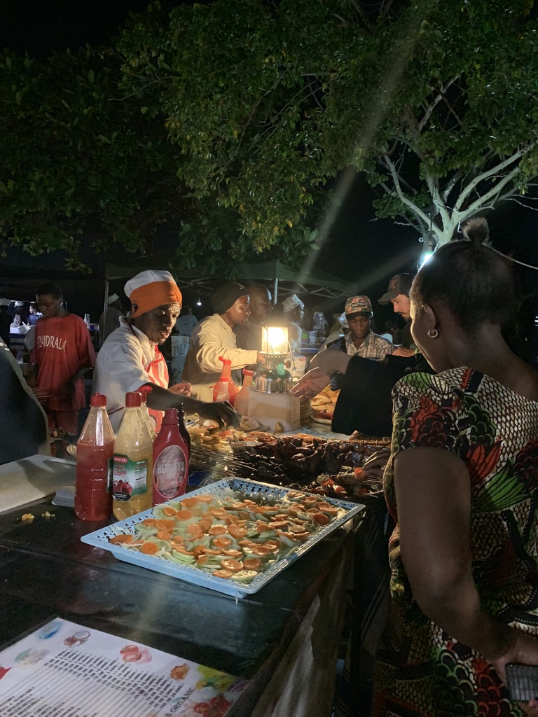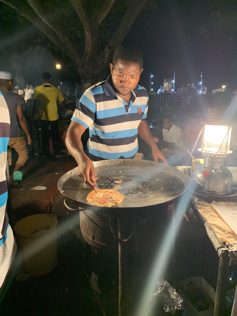 More walking and finally we returned to the hotel to get off our feet, figure out our dinner plans, as well as what to do tomorrow on our last day in Zanzibar. We decided we’d head to the Night Market Food Stalls — just to look and then head to the Lukmaan Restaurant, which we heard has typical Swahili food. You need to queue up to make your selections and then they warm things up, and bring it to your table.