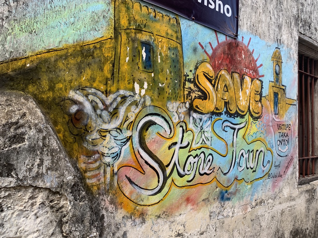 As we walked we spotted some graffiti (first we’ve really seen) with a political message about the future of Stone Town. Apparently although it is a UNESCO Heritage Site, many of the buildings are crumbling and need significant repair. Funding has been received to protect the institutional buildings but not the everyday ones that frame the interior and make it what it is. Indeed most of the institutional buildings are on the edge of the town and ring the waterfront.