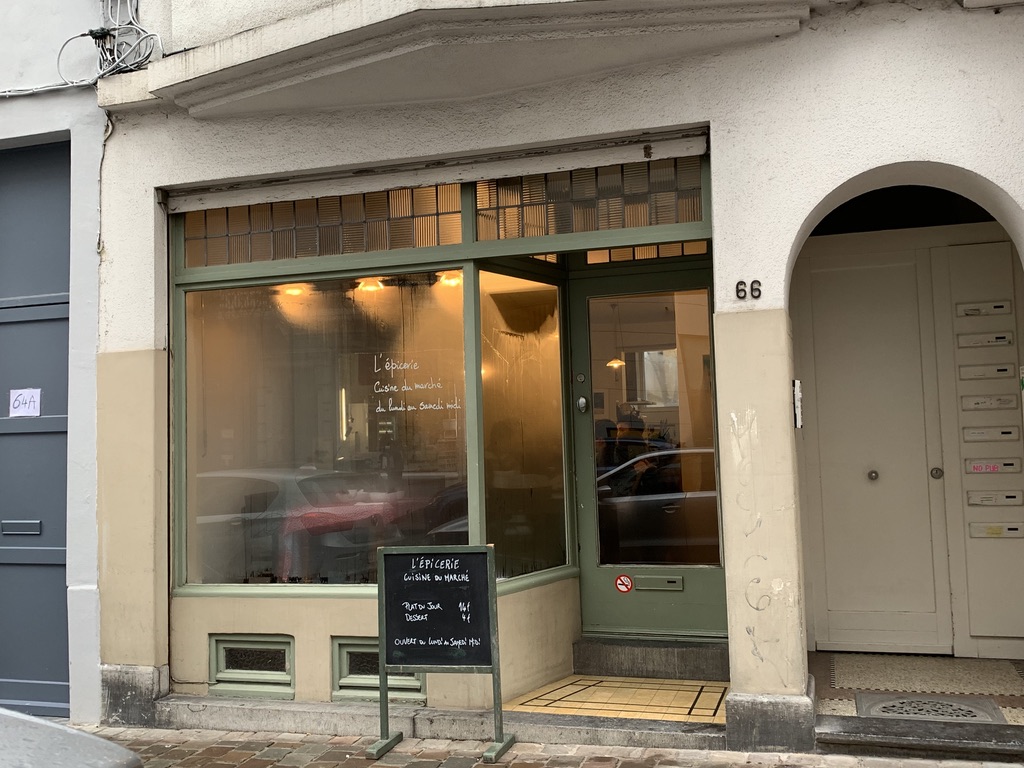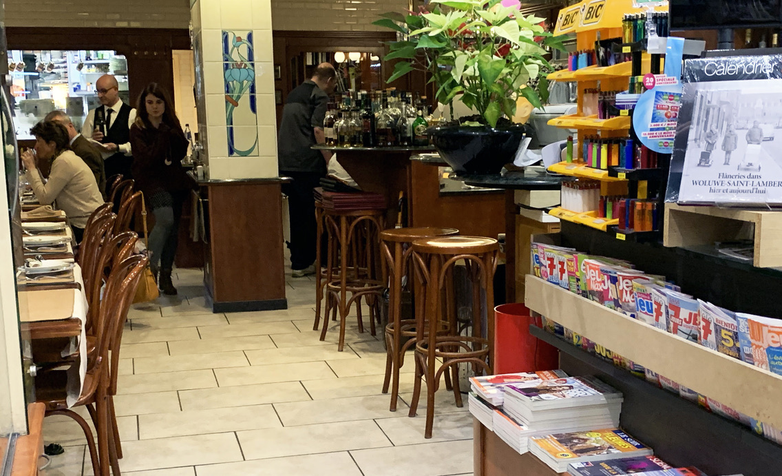 Today we headed to a neighborhood about 3 miles from the hotel (walked) to the Saint Gilles area which is known for having a good many art nouveau buildings. First however we headed to a tiny little restaurant called L’Espicier.. It seats about 22 people and only serves lunch and it is just one meal, no choices. The woman who owns it, does the shopping at the market each day and decides what to cook, does all the cooking, serves the food, and cleans up..