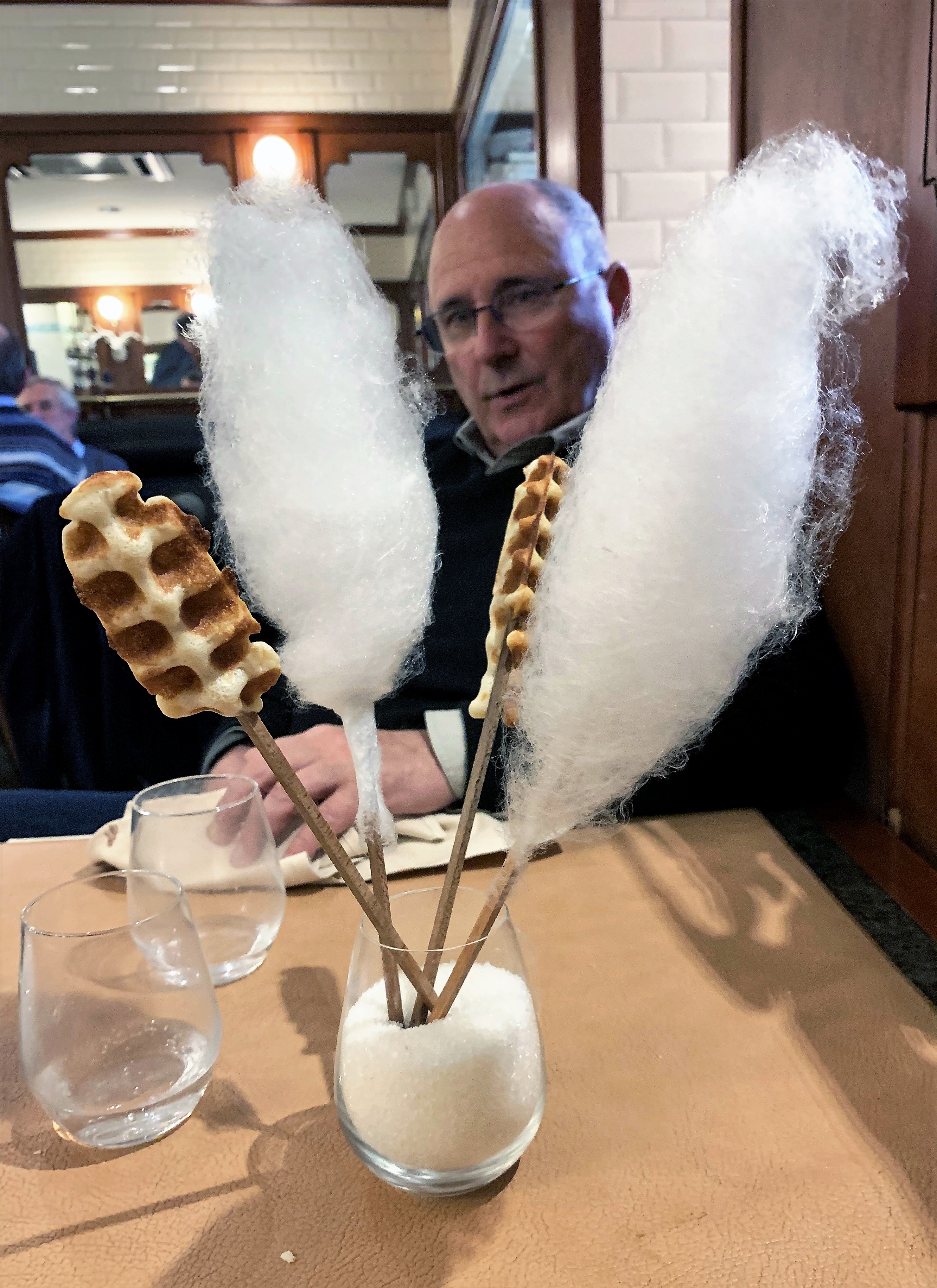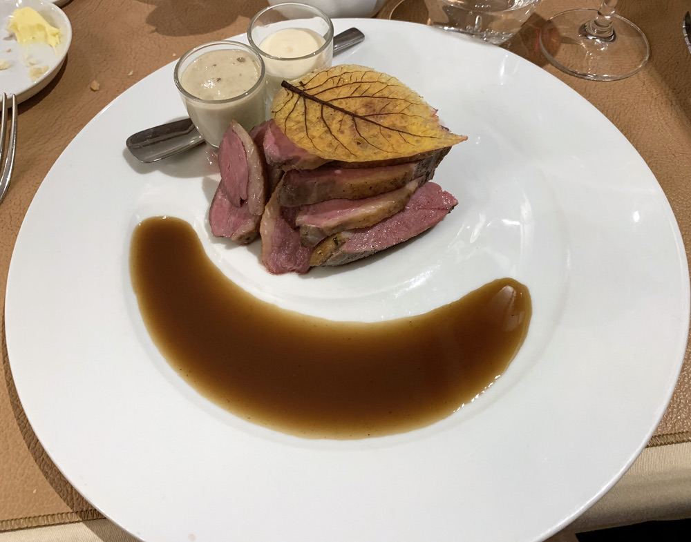 We then walked back to the hotel in the rain (because it was really too close to take a taxi –only 8 minute walk. And then after calling SwissAir a few times in the hope of getting more information about the lost bag (without success) and headed to a restaurant we had read about called De Maurice a Olivier, which has a Michelin star. It was a 15-minute drive. When we got there, we thought the driver made a mistake since he pulled up in front of a somewhat trashy magazine store that sold all sorts of magazines and also candy, but the sign said “Librairie — Restaurant.” We peeked in and thought it was a mistake since all we could see were the magazines. But it was too late, the taxi was gone. So we walked in and lo and behold, behind the front section of the “magazine/candy store” is a wonderful French restaurant (so French that no one spoke any English). The meal was served beautifully and the food was fantastic.