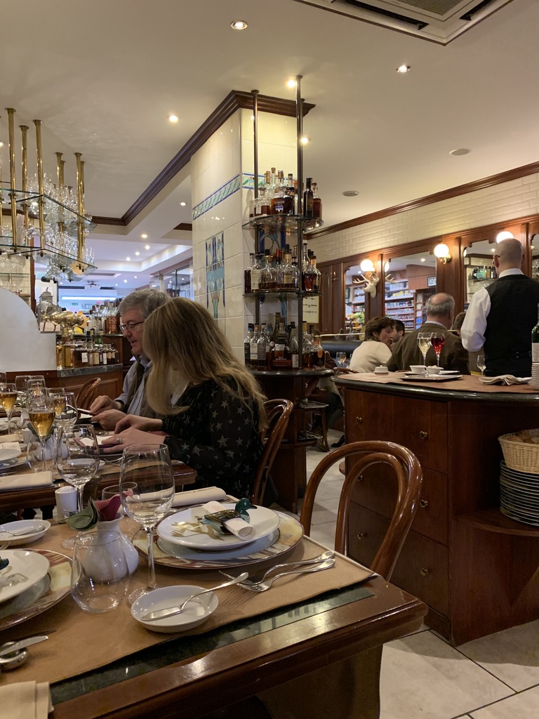 Then we headed to Le Petits Oignons for a great dinner: snails with mushrooms and tarragon and other spices; Linguini with mullet botargo (roe) and organic lemon; steak tartare with pommes frites; and for dessert – panna cotta with fruit. We strolled back to the hotel and collapsed (but did turn on CNN to get a sense of what we are returning to).