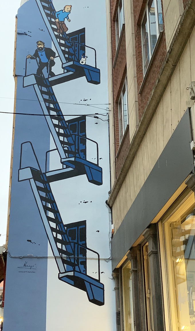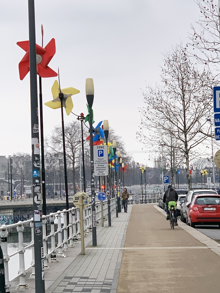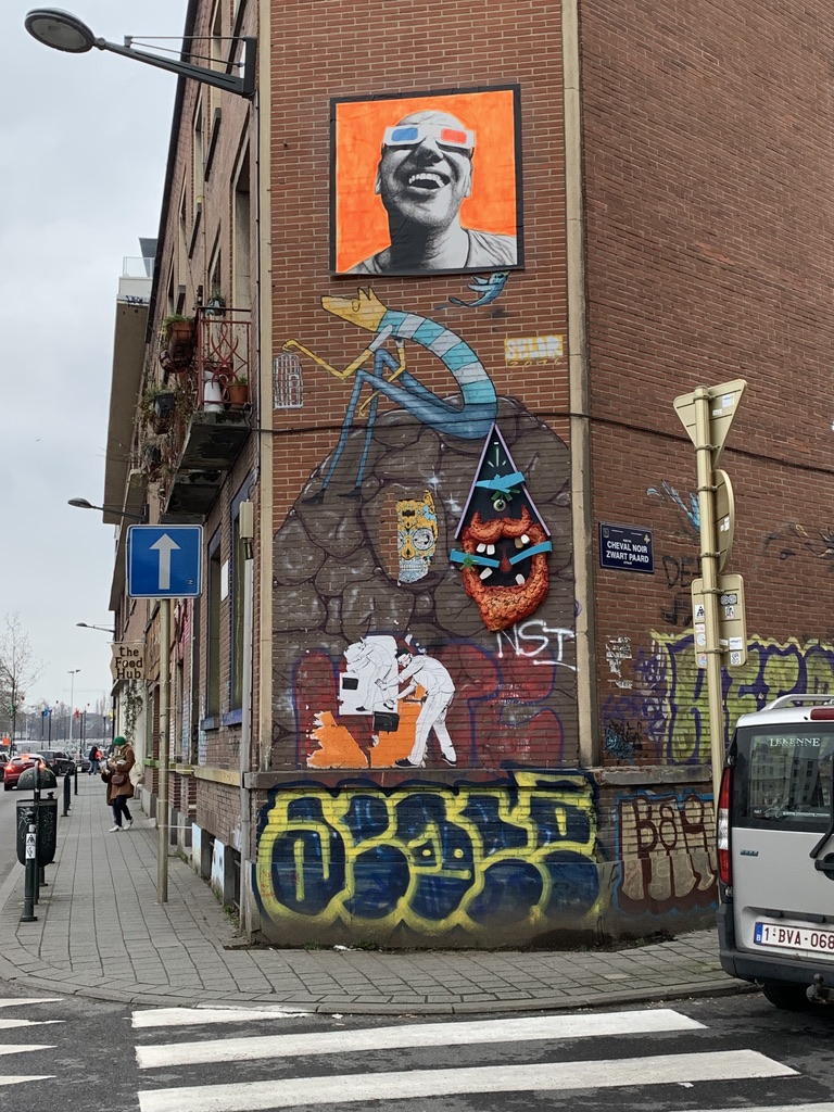 We arrived in Brussels at 9 am on Friday morning after having flown through the night and changed planes at 6 am in Zurich. Took about an hour to deal with the lost bag, and then we headed to the hotel: Le Dixseptiembre – a small place very well located. Mike immediately went to sleep and I showered and walked to the MIMA (Museum of Iconoclastic Modern Art), which focuses on graffiti and graphics. They had a show of protest graphics of the 60s and 70s, which turned out to be predominantly American posters – anti-war, ant-nuke, environment, etc. And although 1968 was a tumultuous year around the globe, most of the imagery was American. The walk to and from the museum (which is across a canal and in a neighborhood that is clearly gentrifying and filled with artist spaces) provided a good cross section of the city.