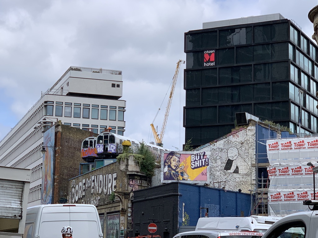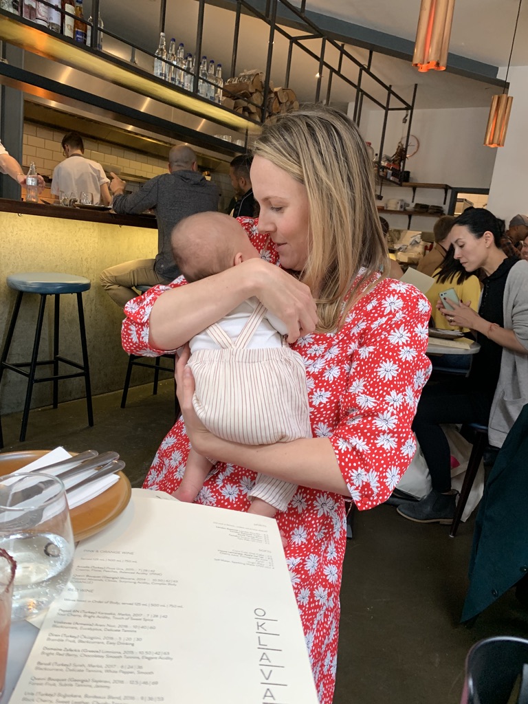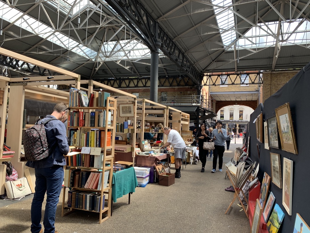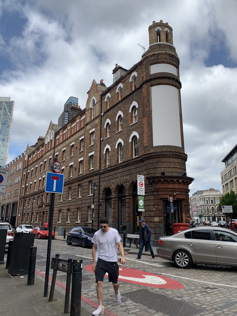 So today we strolled through Spitalfield Market. While there has been a market on that site for about 300 years, it has undergone many transformations. The original Victorian buildings and the market hall and roof have been restored and Spitalfields is a popular destination for food, crafts, and restaurants. Apparently in the 1990s there was some kind of dispute between the City of London Corporation (owners) and local residents about the redevelopment of the 80 year old; the city won, and now a large office block surrounds that side of the site. And then headed to meet Emma and Hem and Finn at a ne restaurant called Oklava, which I highly recommend.. Very tiny. Probably only fits about 30 people inside, but they have outside stools that meet up with the windows and people are eating there as well and being served from the inside window. Today was a beautiful day so the restaurant was hopping – inside and out.