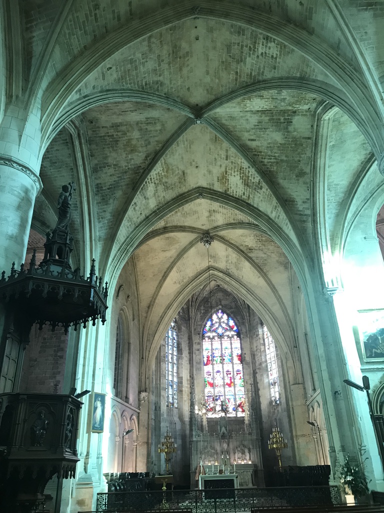 And Saint Emilion (a UNESCO Heritage Site – another program the US no longer participates in since #45 has taken us out of UNESCO) is charming – filled with numerous Romanesque churches and ruins and narrow cobblestone streets. The medieval town’s history goes back to the 2nd Century when the Romans planted vineyards in the area. Supposedly, monks started up the commercial wine production in the area. We strolled the streets (fortunately no rain), and stopped into a little bistro for lunch (cassoulet and salad), and then strolled some more as Mike’s pain seemed to have subsided. At one point, when we were planning this part of our trip, we considered staying in Saint Emilion for two nights. While it is quite delightful, I’m very very glad we settled on Bordeaux. We would have been bored in Saint Emilion – too small.