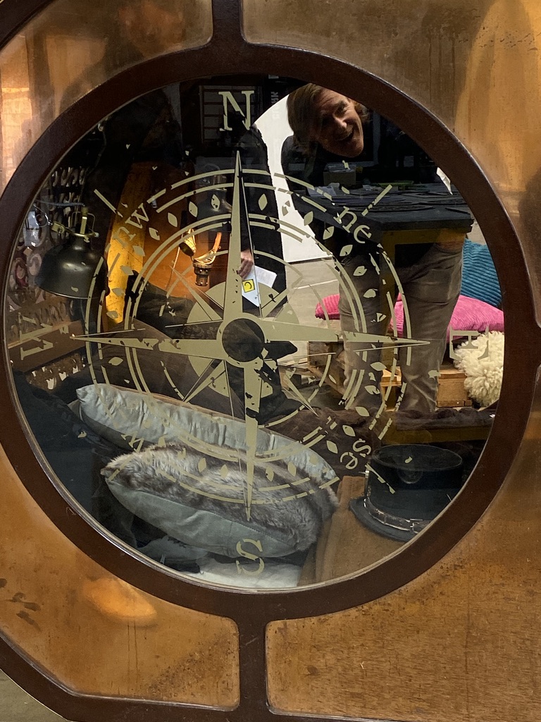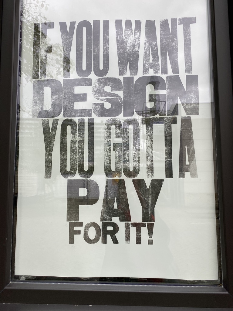 She was feisty and interesting, although we also learned she had a stroke just two weeks earlier and was a bit concerned about her health situation. She was flustered when she couldn’t remember how to use her Apple Square to accept our credit cards. Yes we made a purchase, and no she no longer considers herself an architect, but her clothing is very constructivist and architectural.