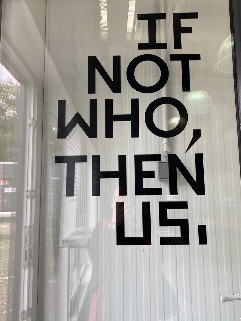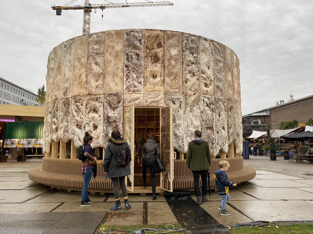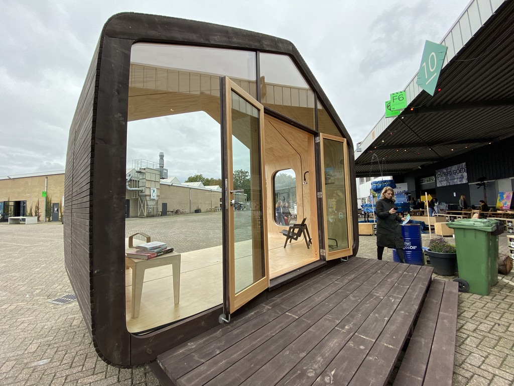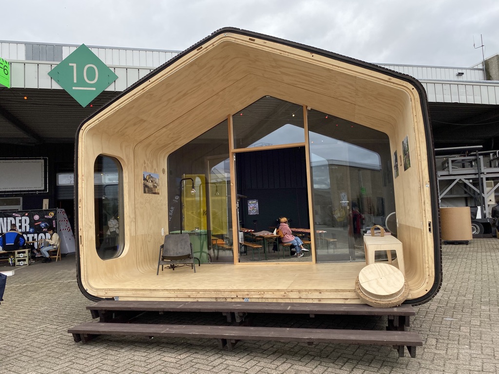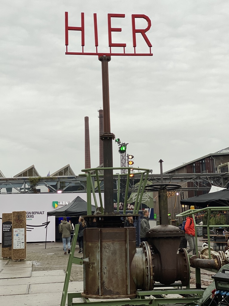 After breakfast this morning, we headed (by car – with me driving and Carol navigating) to what is known as “Sectie C” or Section C – a section of town that has been populated by artists and makers for decades – occupying abandoned and/or no longer usable warehouses and industrial buildings on a fairly large tract of land surrounded by a cute neighborhood. The whole property was open because of Design Week and again most of the exhibits had to do with sustainability and ways to change Dutch practices for the better. One particularly fascinating project was the Wikkle House.
