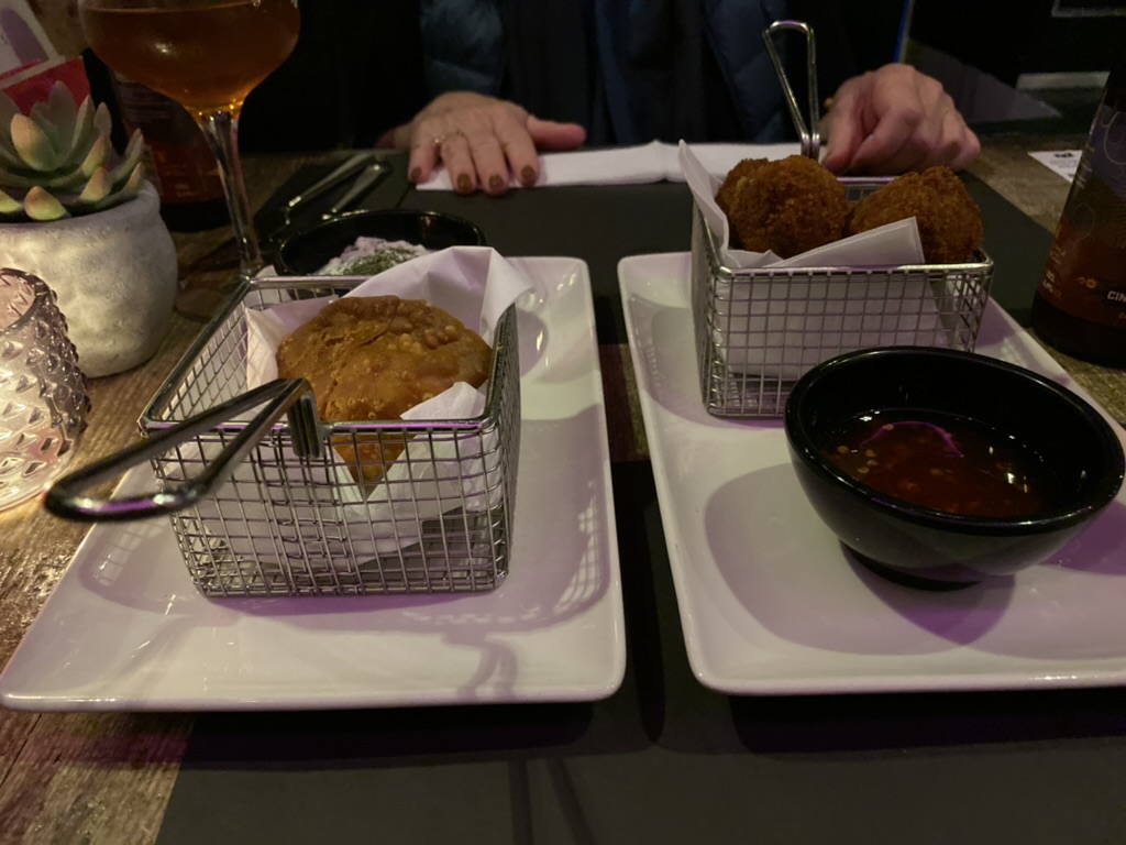 After a very brief stop at the hotel we headed out to a restaurant called Flavor and Spice (Indonesian with a touch of Afghani!). We took a taxi so as not to get totally lost in the neighborhood where the restaurant sat. It was adorable. Only seats about 30 people. A couple – probably about 50 years old – own it and she is the one who figures out the menu and cooks quite a bit. Her husband is the co-owner and he tends bar. He’s Dutch and she’s Afghani (having emigrated about 25 years ago with her family, but then lived in several other places including India). I think her father was an Afghani diplomat way back when.