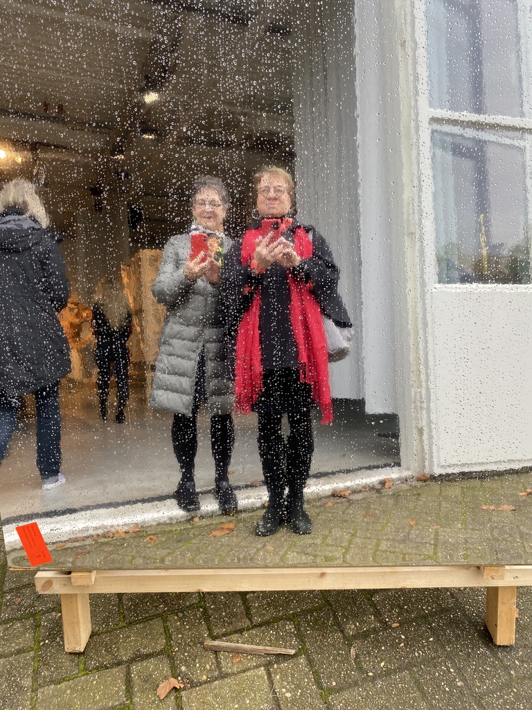 By now it was close to 6:00 pm, so we headed to the hotel to think about dinner (eating, eating, eating), but along the way we spied what looked like a really cute store which had a lot of vests and scarfs made of felt. How lucky that we found a parking spot right there in front of the shop. As it turned out it was really this woman’s apartment (first floor) and she makes wonderful vests and scarves. She’s probably in the high 70s/early 80s and has lived and worked from this flat for decades. Her story was interesting, The building was constructed in the 1930s as rental units and stretches an entire block. She was trained as an architect and had her office there (I believe living behind the office). But the city (about 10 years ago) decided to tear down that whole housing block because it is very close to the Philips Eindhoven Stadium where soccer is played. I suppose they felt they could sell the property to a developer. Anyway, she led the fight to preserve the building and just last year (maybe two years ago) they won the fight and everyone remained in place in the building they had called home.