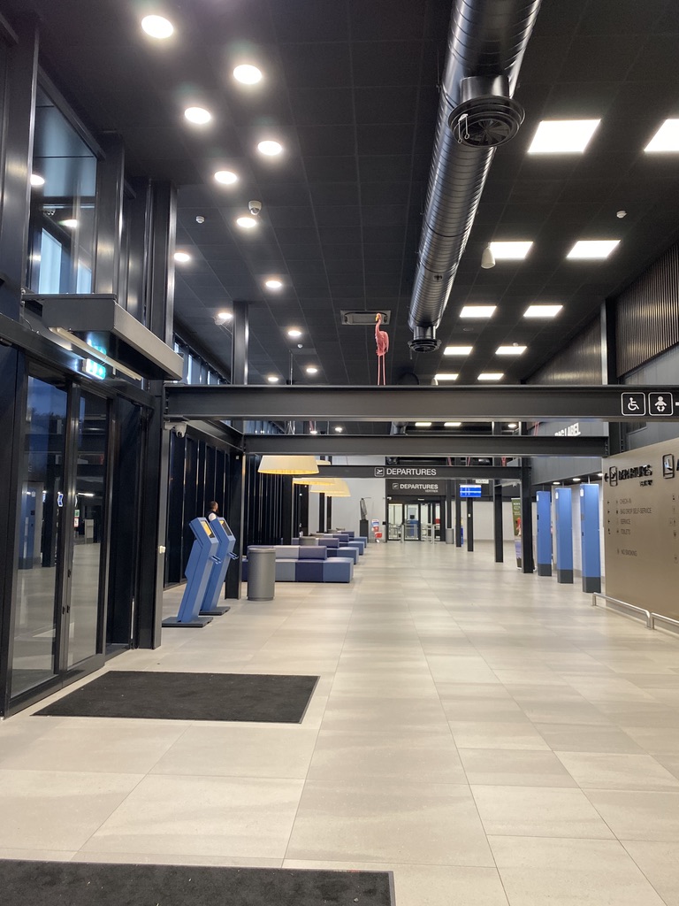 The drive back was considerably longer than the drive to the Arc – lots of traffic and construction. I had driven the whole way to the arc.. and drove about halfway back when I realized I was really really tired, so Carol got us back to Maastricht. By the time we go to the tiny Maastricht Airport it was about 6:30. We couldn’t find any place to leave the car. So I went into the airport to inquire and Carol waited in the car right in front of the terminal. Turns out the last flight of the day had already taken off and the terminal was deserted (although open!). The rental car “desk” was empty; no agents at the counter; the security section was closed off. It was a bit surreal. Finally, some guy came out of a door and I ran and asked what to do with the car. He explained that we needed to bring it to the parking lot and then put the key into this “tube.” Just as I went out to tell Carol, I saw two cops coming virtually out of no where to tell her she was illegally parked and needed to move! We explained our predicament and that we were just going to get our baggage out of the car and she would move the car. Then we asked where we could get a taxi. They explained that there was a post about 100 feet from where we were standing and it listed all the taxi numbers. We thanked them and put the bags inside the “abandoned” airport and Carol took off with the car. I started to go to the post to find the phone numbers for the taxis, but now some woman appeared to say we couldn’t leave our bags inside the airport (I suppose regardless of how small the airport they all follow protocol) unless one of us was with the bags.