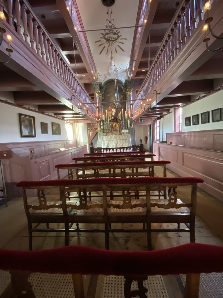 The story is amazing and the building is incredible. It’s a large 17th Century house situated right on one of the canals. The first two large floors are a residence and the top two floors are a full church, complete with an altar, pews for about 80 people on the main floor and more seats on the balcony level. There are two confessionals, an organ, a room to prepare the sacraments, as well as a room for the priest – and more. The owner of this building was a German merchant (Jan Hartman) who was responsible for the construction of the building. It remained a functioning parish for 200 years.