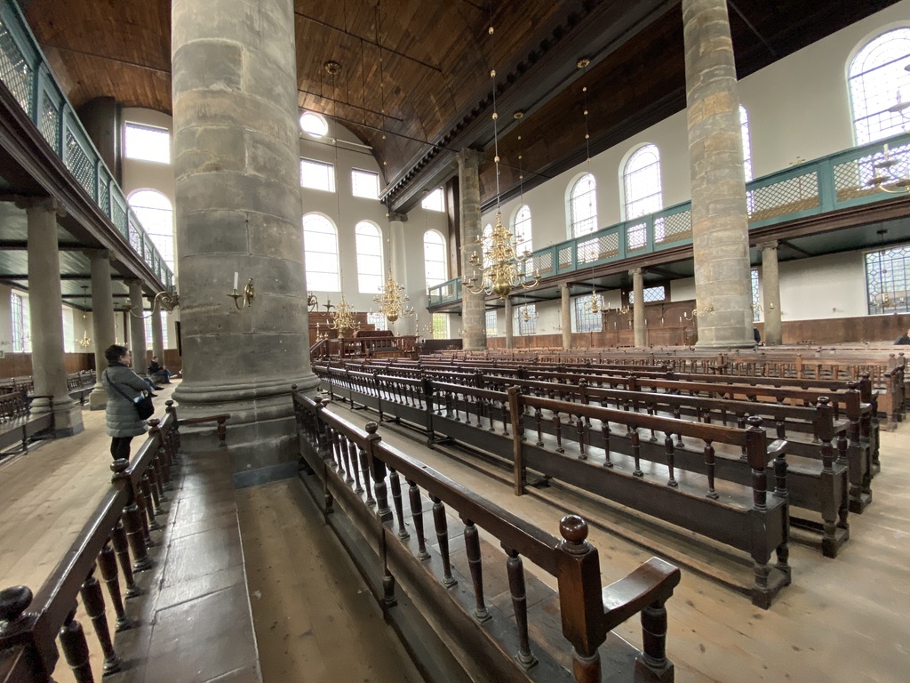 We headed to the Portuguese Synagogue since we were already on this religious roll. It’s located in the old Jewish Quarter and dates back to 1675. At that time it was the largest synagogue in the world and supposedly demonstrated Amsterdam’s religious tolerance at that time. It is lit by 1,000 candles on holidays; there is no electricity. Amazingly, it survived WWII and is still in use (sort of). Spanish and Portuguese Jews had fled the inquisition and became merchants in the Netherlands. As we left the synagogue we asked about the monthly concert we had heard was held in the sanctuary. Turns out it was last night. We thought it would be great to sit in this large candle-lit space for a concert. Oh well, didn’t time that so well. We also asked if they still held Shabbat services and they said they did. We asked if we could come and they answered positively and said the services begin at 6 pm.