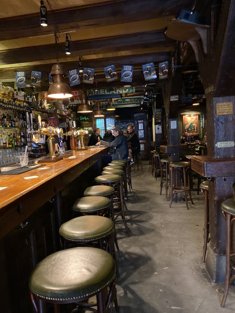 So, we started out a bit late and headed out without breakfast.. we walked a bit and scrutinized numerous possible places for breakfast or brunch and before we knew it we were not in an area that had much choice (there’s actually a multitude of places but it was a bit late and many places were already on lunch menus. So we wound up inside a very old, dark Irish pub (Molly Malone’s) where most people had already been drinking for a while (from the selection of 75 whiskeys), but they had really good home-smoked salmon and also the Dutch staple – tomato soup and wonderful brown bread, so we indulged (sans alcohol).