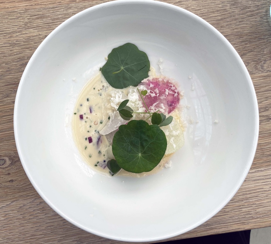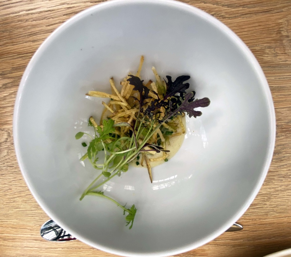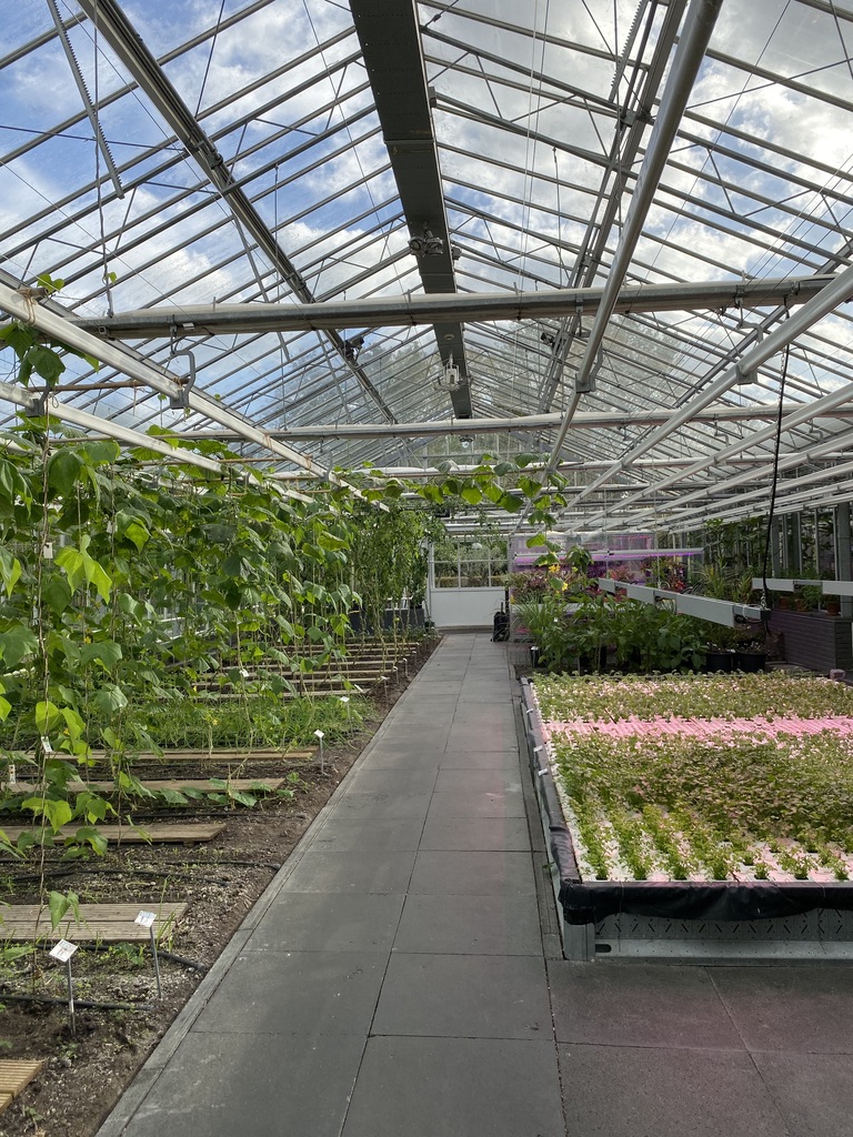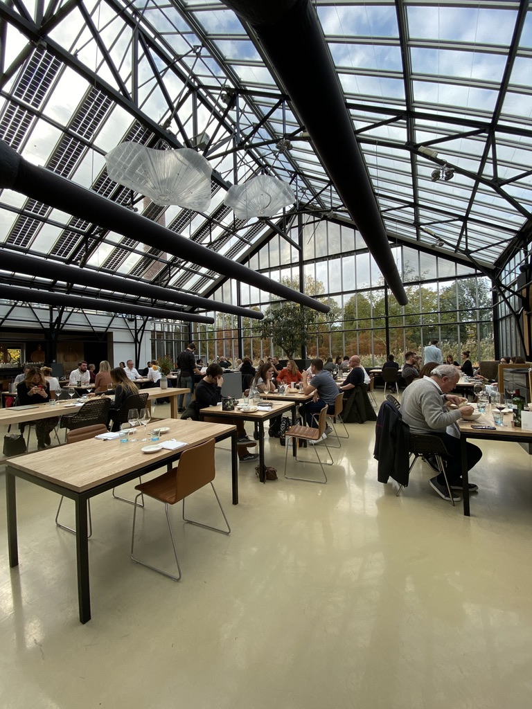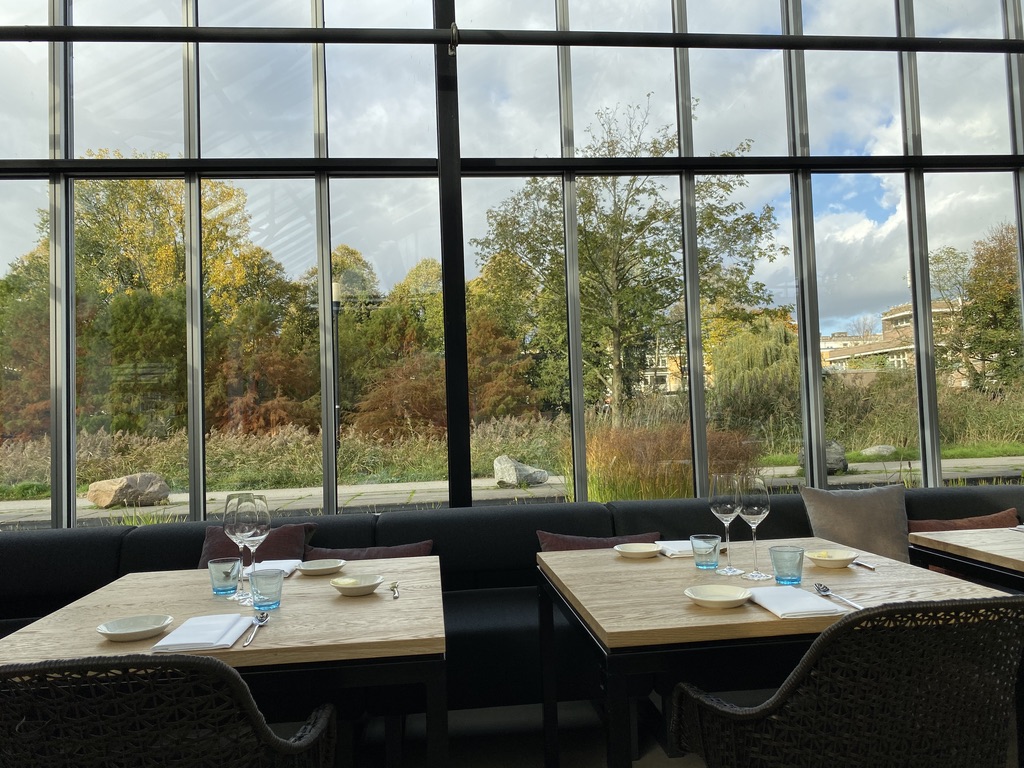 It’s been a great last day. After spending a bit of time in the early morning doing some work (yes, work!) and a bit of organizing so that packing won’t be too awful later in the evening, we headed out for a wonderful last lunch. We took the tram and changed to a bus (did it all correctly, today, no mistakes! Getting to be a local) to get to DeKas Restaurant which is located in a wonderful greenhouse just inside Frankendael Park. Apparently it was slated for demolition and the owners decided to repurpose the greenhouse and these restauranteurs decided to use part for a working greenhouse and the other part for a charming, spacious restaurant. They also have a 4-acre farm on the outskirts of Amsterdam so all of the food is sustainably grown. The restaurant’s specialty is combining sweet and sour flavors.. so they use interesting vinegars in many of the preparations. “Picked in the morning, served in the afternoon” is the mantra here.
