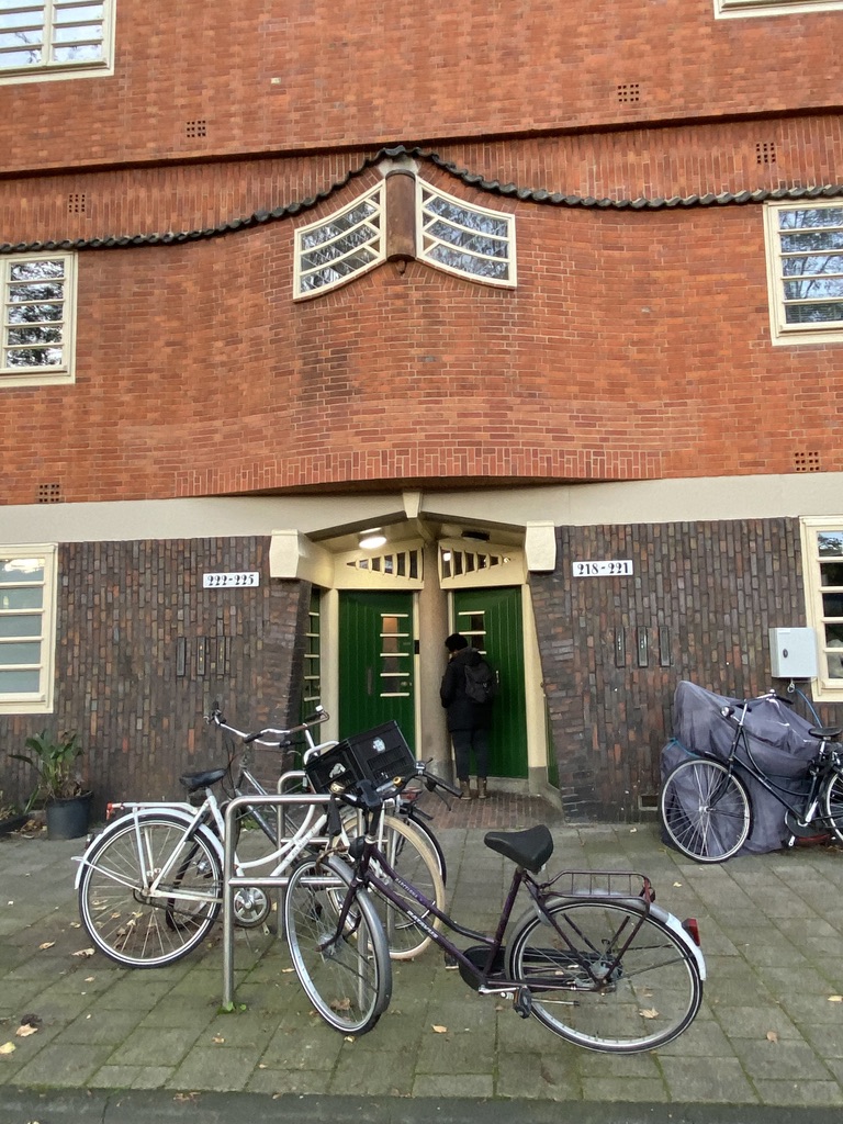 The craftsmanship, details, and overall design are amazing to see – an honor to the residents. Alice (the woman) is feisty and intelligent. She talked to us about more recent struggles to ensure that social housing will remain forever in the hands of low income people and not go the way of the UK which privatized units within their social housing and made efforts to increase the amount of privatization. We talked about the need for affordable housing in the US and when we finally bid adieu to Alice she cheered us for caring about this issues amid (as she called it) these “Trumpies” who want to destroy civilization! We promised to tell everyone we know to come to visit Het Schip – so I am doing that here. Don’t go on Mondays because the museum is closed and you might not luck out to meet Alice.