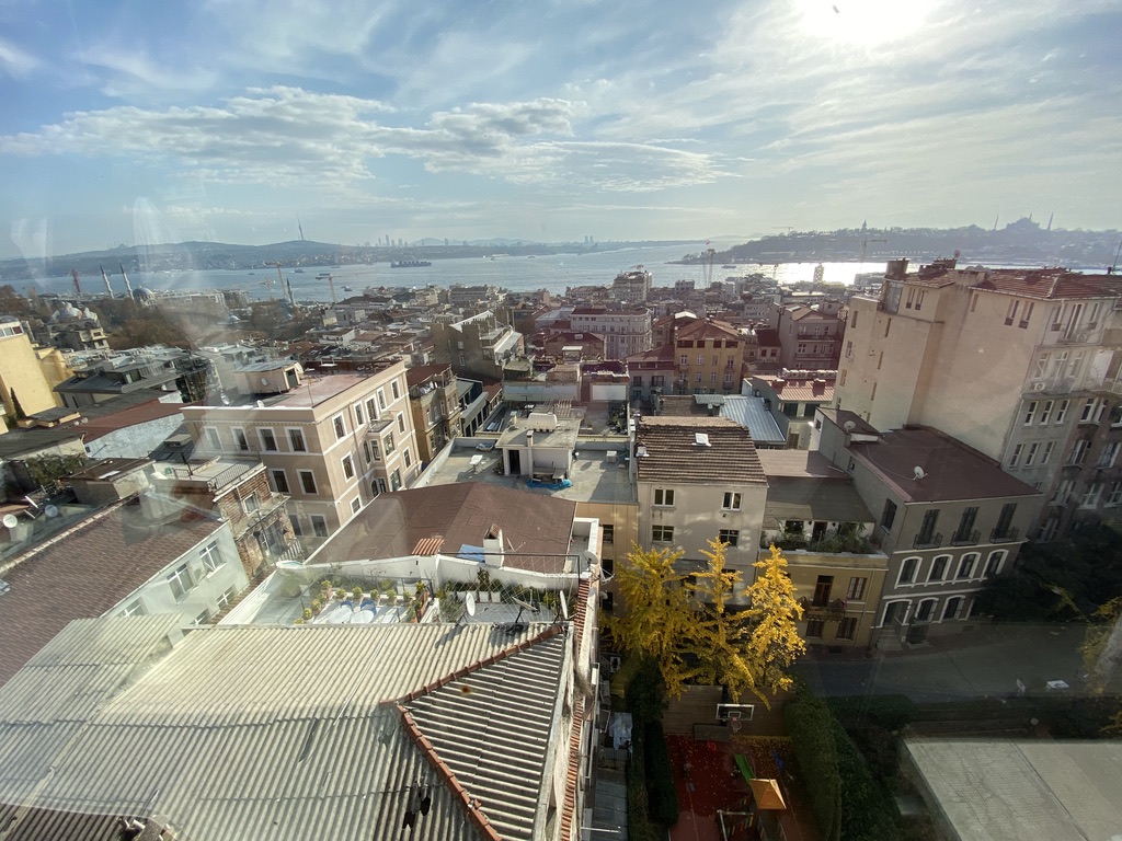 On Saturday morning we had breakfast up on the roof – which has great views across the Golden Horn and also into the maze of streets of the Galata District. The weather is fantastic – last two times we were here in winter, it rained and was pretty cold. But it’s been in the 60s which was also helpful since most of my sweaters were in the luggage that hadn’t arrived. Since we are only here for 2.5 days (as a transfer point between Geneva and Tashkent – long story about the route we are taking), we decided not to revisit any of the major points (Blue Mosque, Hagia Sophia, or even the Galata Tower which is basically around the corner, etc.) and to stroll through our neighborhood (first time we’ve stayed on the European side of Istanbul) and then cross the Galata Bridge to visit the one place I’d always go to when in Istanbul – the Grand Bazaar.