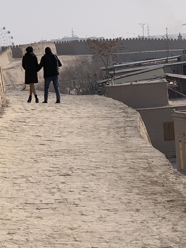 Following our very un-luxurious train ride from Bukhara (through the night), we arrived in Khiva yesterday (Thursday, January 9) at about 11 am and taxied to the hotel. After we settled in, showered (after that train ride), we decided to explore the city before it got dark.