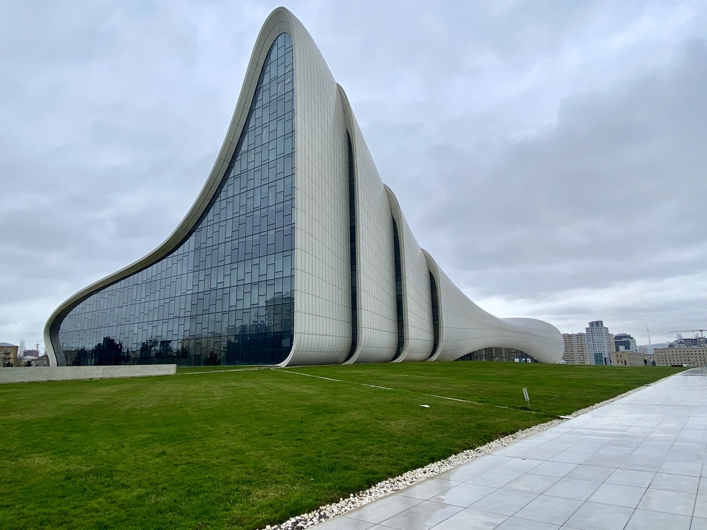 We decided that we should see the Zaha Hadid building (the Heydar Aliyev Center) which houses a museum and convention areas and other spaces. Frankly, visiting it was like a “check-the-box” decision. We only saw the outside since it’s closed on Mondays. Neither of us were impressed. It’s totally out of context – sort of plopped down in the middle of a neighborhood and I’m quite certain that many people living on that site were probably displaced to create this monument to culture. Mike created a new term called “plop architecture” which is quite appropriate. I guess this is Azerbaijani urban renewal.