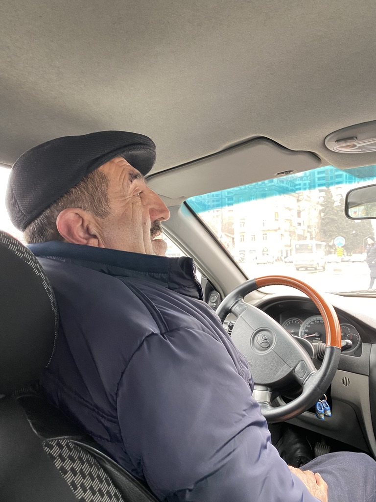 By then it was really raining and we decided to take a taxi back to the metro. The taxi driver didn’t speak any English but was very excited when he found out we were Americans. Turns out his son won the green card lottery and now lives in NY (probably Queens) although the father didn’t have an address, only a cell phone number. We did communicate enough to learn that the son is studying computers and that (ironically) he works as a taxi driver in NYC (perhaps to pay his way through his computer course). At least this is what we think he was trying to convey. When we approached the metro station, the driver refused to take any money from us. He was still so excited to meet an American. Another taxi driver remarked in limited English that Azerbaijan was 10% good and 90% not good; America very good. So what can I say?