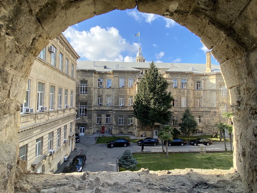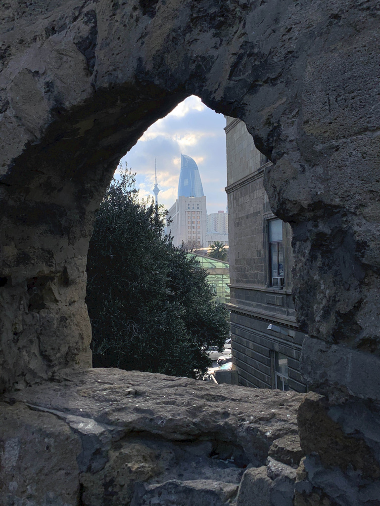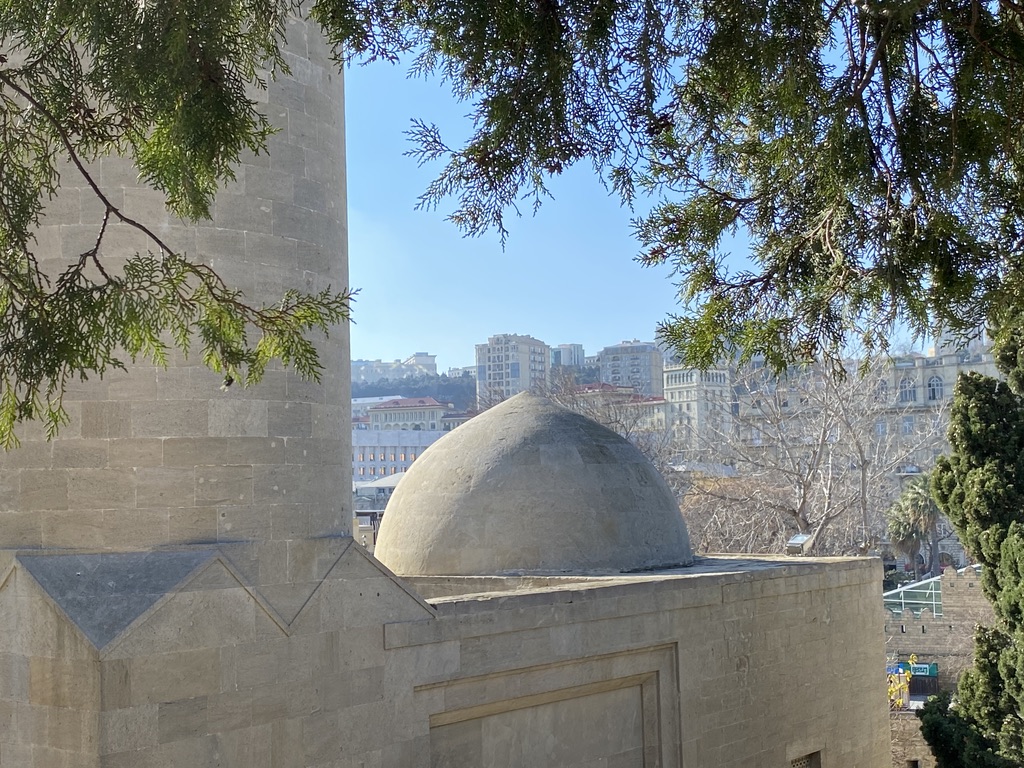 Today was a beautiful sunny day in Baku; we walked for hours in the old city (a UNESCO heritage site) with buildings dating to the 12th Century (and some saying as early as the 9th Century). In 1806, when Baku was occupied by the Russian Empire there were as many as 500 households living in what is now known as the walled “Old City”… In the early part of the 19th Century, the walls were repaired and those who lived within the walls of the old city were considered to be natives of Baku. They lived close to the bazaar and to the mosques. When the Russians came, many European style buildings were constructed and Baroque and Gothic buildings were created. Today, the Old City is home to about 1000 residents and the location of many delightful restaurants, shops, and cobblestone walking streets.