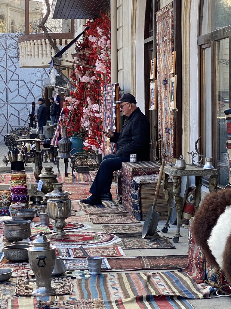 And just like that the Christmas decorations (all Santa Claus, no religious symbols) all around town and in the hotel as well, disappeared and it was Spring and flowers. And just like that, our days in Baku and in Central Asia are coming to an end. Tomorrow.