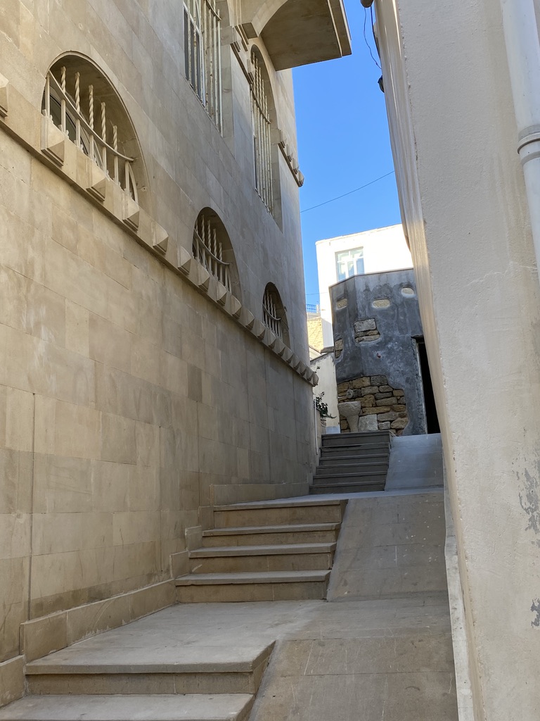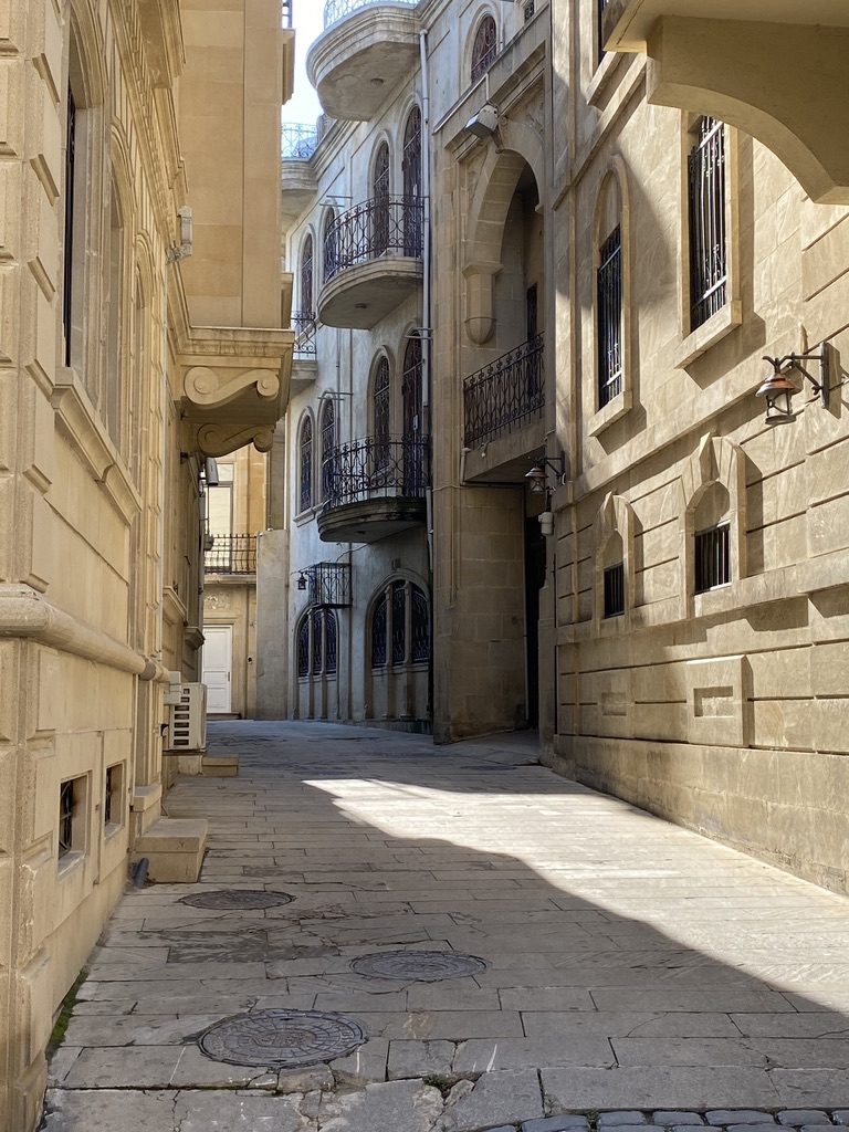 We had breakfast at a local place called Qanisi (I should mention that Azerbaijanis would easily win at Scrabble since they have so many words that start with the letter “q” and don’t require the letter “u”… The old city is a cacophony of winding narrow and curving stone and cobblestone streets, alleys, and stairs that lead to houses, squares, and important spaces. The original footprint of the city is several centuries old, but the Russo-European architecture of the 19th Century definitely impacted the sense of the old center.