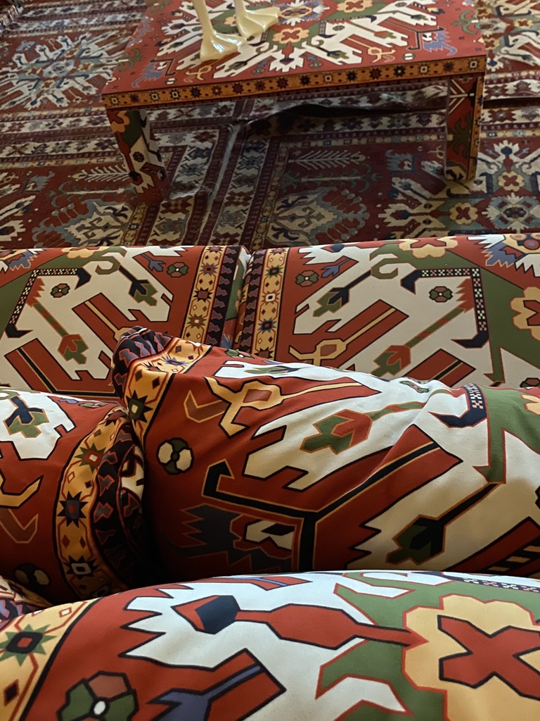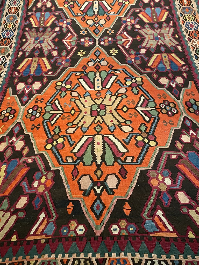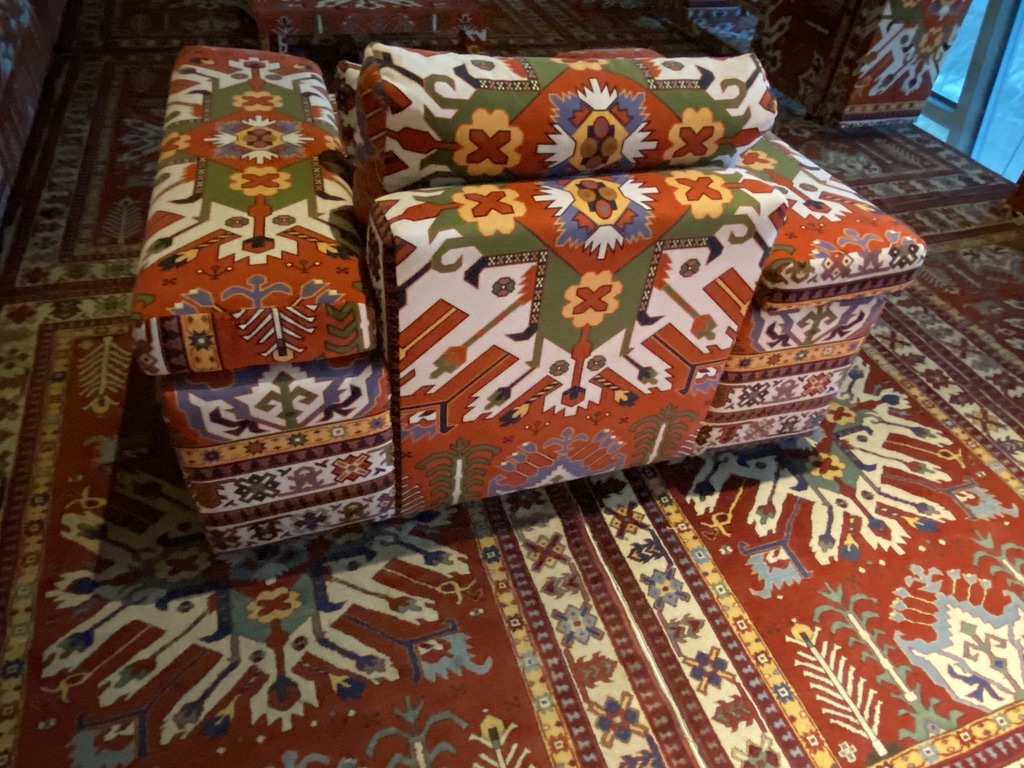 The funicular was spanking new and delivered us practically to the doorstep of the Carpet Museum, which turned out to be far more interesting than we anticipated. We also encountered a very cute school group of 2nd graders (I’m guessing) who had never before been on an escalator… It was delightful to watch the teachers explain how to use the escalator and to see the kids excitedly try it out. Kids wore school uniforms. After scoping out the museum, we were headed to the music museum but it began to rain and got very windy, so we ducked into the museum for a quick lunch (soup) and then decided it was best to head back to the hotel to pack. By then we were pretty beat and decided to cancel our dinner reservations (would have had to walk in the rain and wind) and just eat at the hotel so we could get an early start tomorrow to get to the Baku Airport.